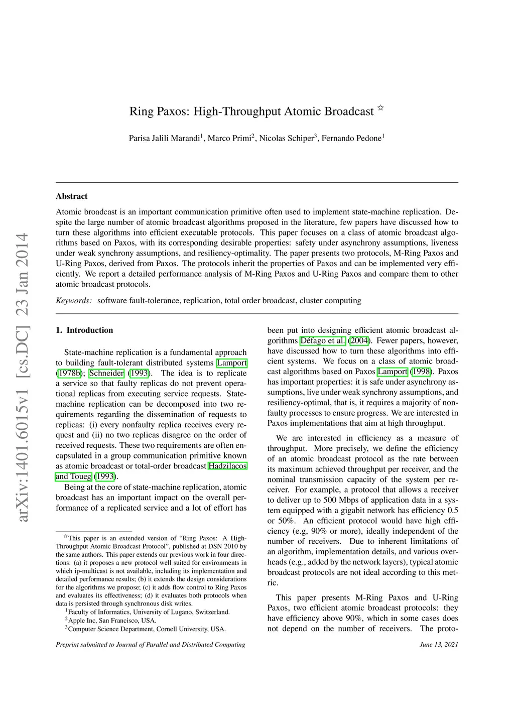 Ring Paxos: High-Throughput Atomic Broadcast