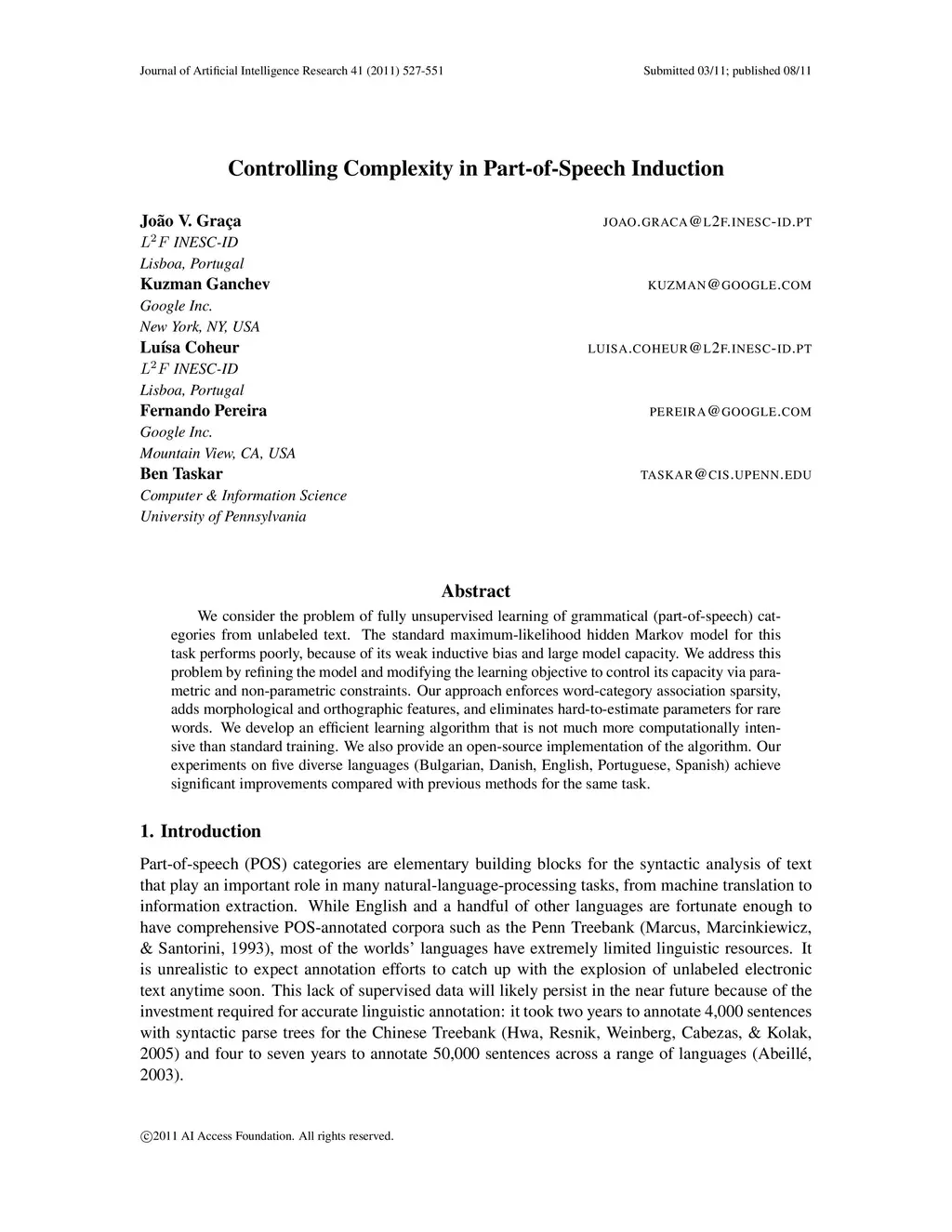 Controlling Complexity in Part-of-Speech Induction