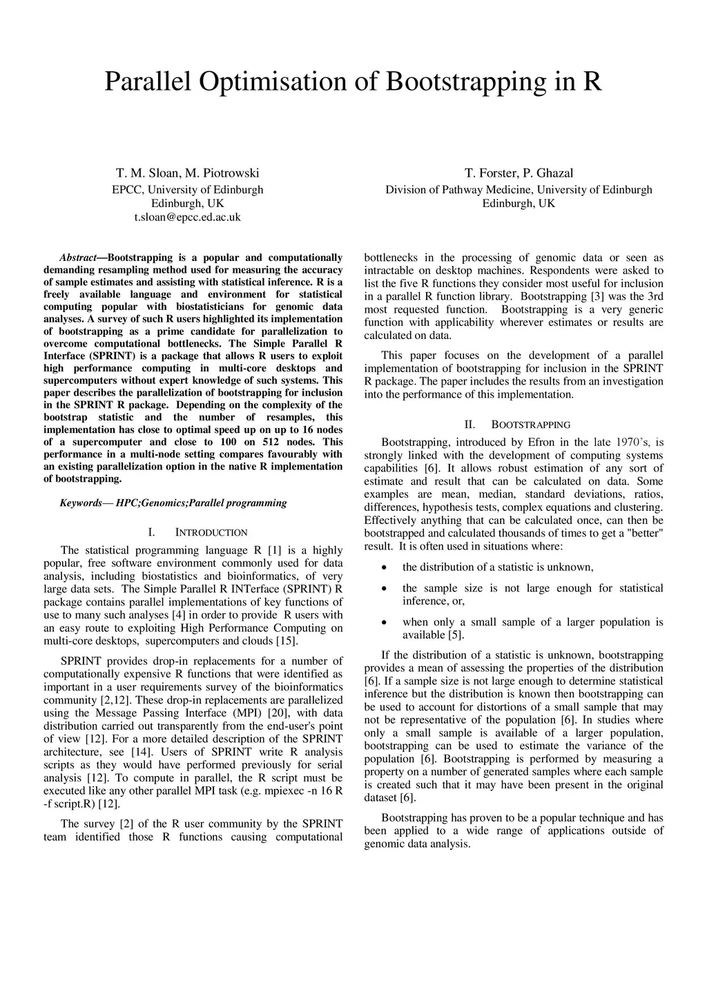 Parallel Optimisation of Bootstrapping in R