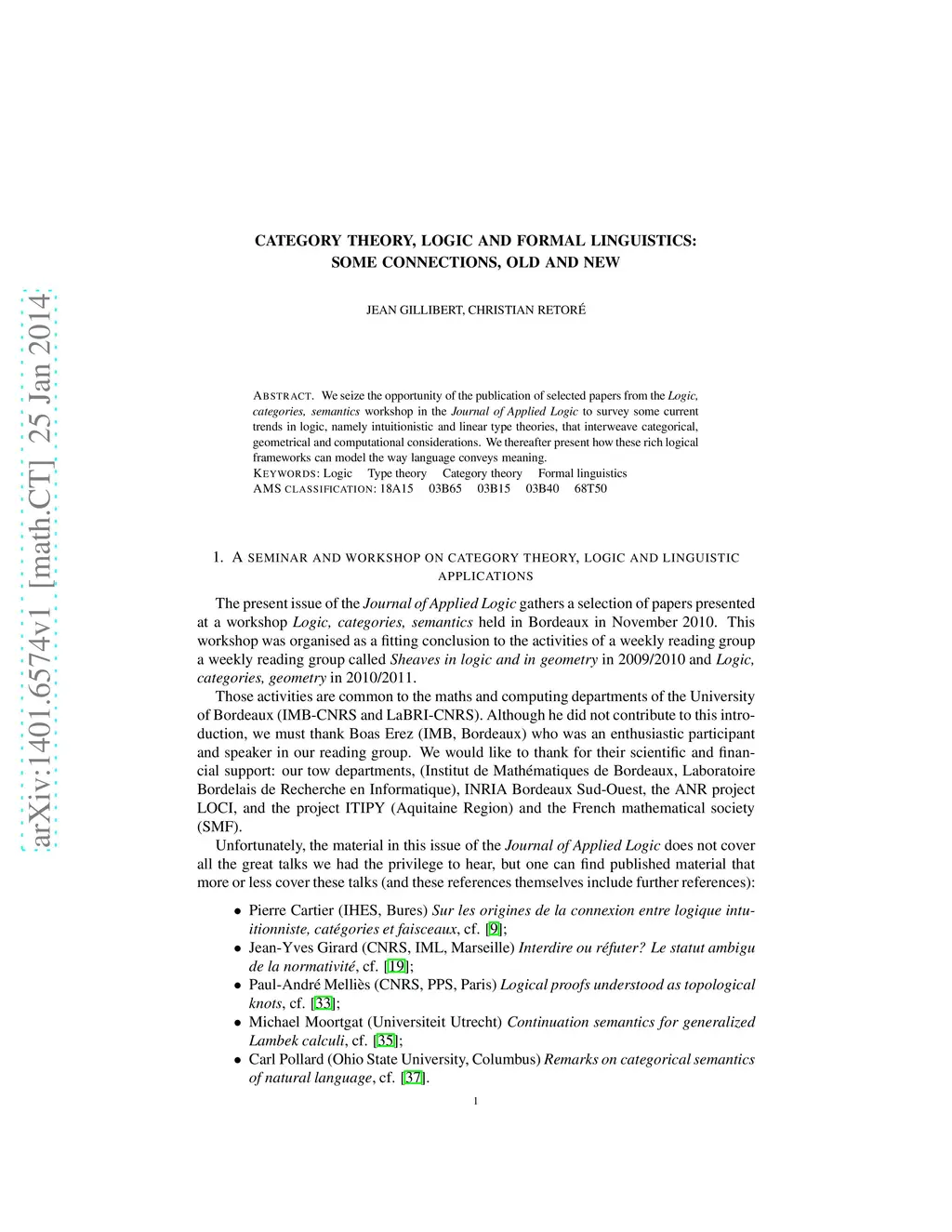 We seize the opportunity of the publication of selected papers from the \emph{Logic, categories, semantics} workshop in the \emph{Journal of Applied Logic} to survey some current trends in logic, namely intuitionistic and linear type theories, that interweave categorical, geometrical and computational considerations. We thereafter present how these rich logical frameworks can model the way language conveys meaning.