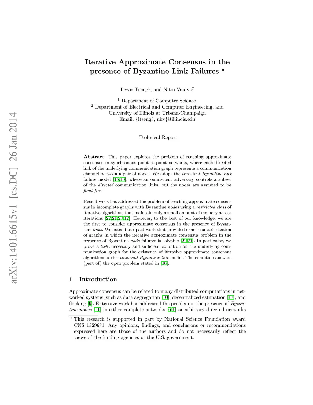 This paper explores the problem of reaching approximate consensus in synchronous point-to-point networks, where each directed link of the underlying communication graph represents a communication channel between a pair of nodes. We adopt the transient Byzantine link failure model [15, 16], where an omniscient adversary controls a subset of the directed communication links, but the nodes are assumed to be fault-free. Recent work has addressed the problem of reaching approximate consen- sus in incomplete graphs with Byzantine nodes using a restricted class of iterative algorithms that maintain only a small amount of memory across iterations [22, 21, 23, 12]. However, to the best of our knowledge, we are the first to consider approximate consensus in the presence of Byzan- tine links. We extend our past work that provided exact characterization of graphs in which the iterative approximate consensus problem in the presence of Byzantine node failures is solvable [22, 21]. In particular, we prove a tight necessary and sufficient condition on the underlying com- munication graph for the existence of iterative approximate consensus algorithms under transient Byzantine link model. The condition answers (part of) the open problem stated in [16].