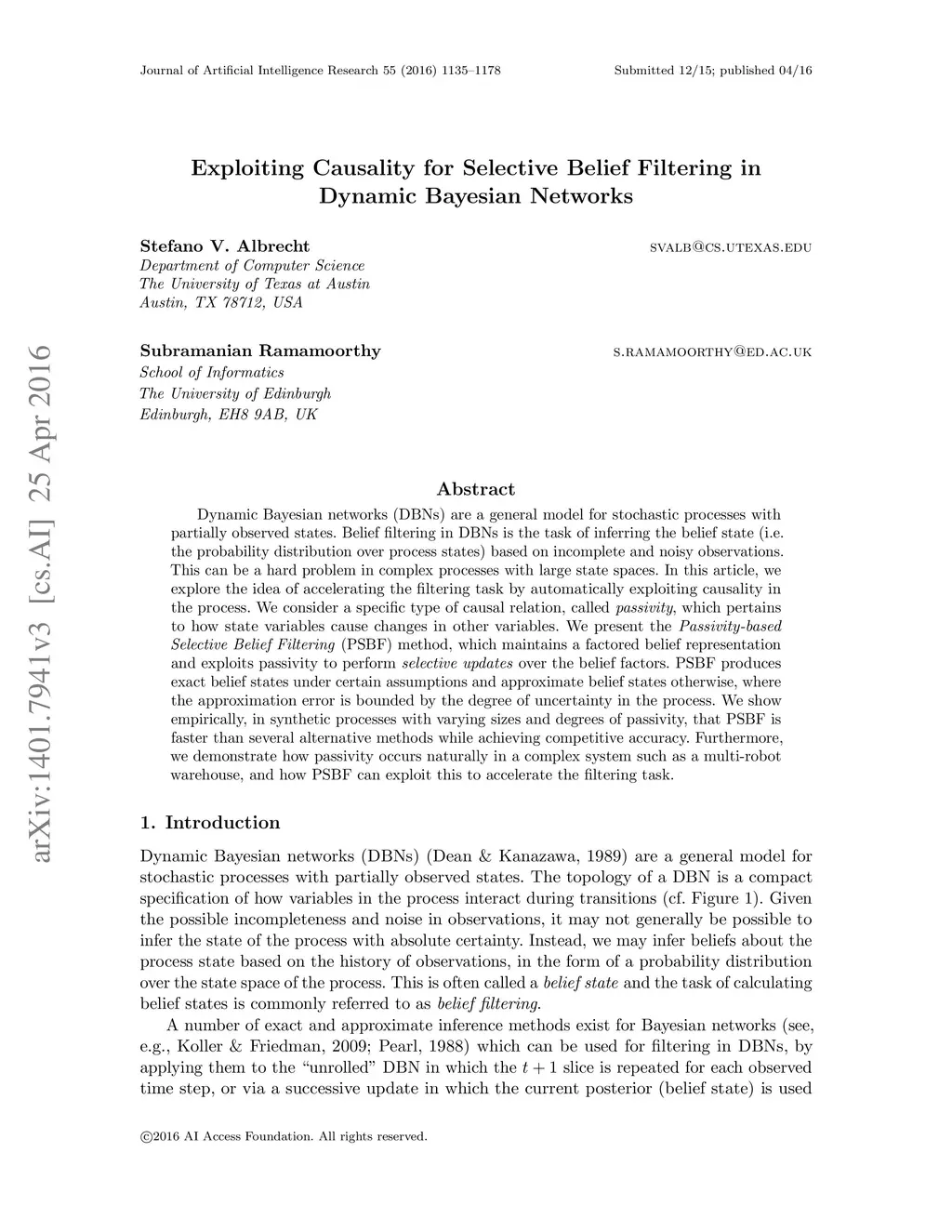 Dynamic Bayesian networks (DBNs) are a general model for stochastic processes with partially observed states. Belief filtering in DBNs is the task of inferring the belief state (i.e. the probability distribution over process states) based on incomplete and noisy observations. This can be a hard problem in complex processes with large state spaces. In this article, we explore the idea of accelerating the filtering task by automatically exploiting causality in the process. We consider a specific type of causal relation, called passivity, which pertains to how state variables cause changes in other variables. We present the Passivity-based Selective Belief Filtering (PSBF) method, which maintains a factored belief representation and exploits passivity to perform selective updates over the belief factors. PSBF produces exact belief states under certain assumptions and approximate belief states otherwise, where the approximation error is bounded by the degree of uncertainty in the process. We show empirically, in synthetic processes with varying sizes and degrees of passivity, that PSBF is faster than several alternative methods while achieving competitive accuracy. Furthermore, we demonstrate how passivity occurs naturally in a complex system such as a multi-robot warehouse, and how PSBF can exploit this to accelerate the filtering task.