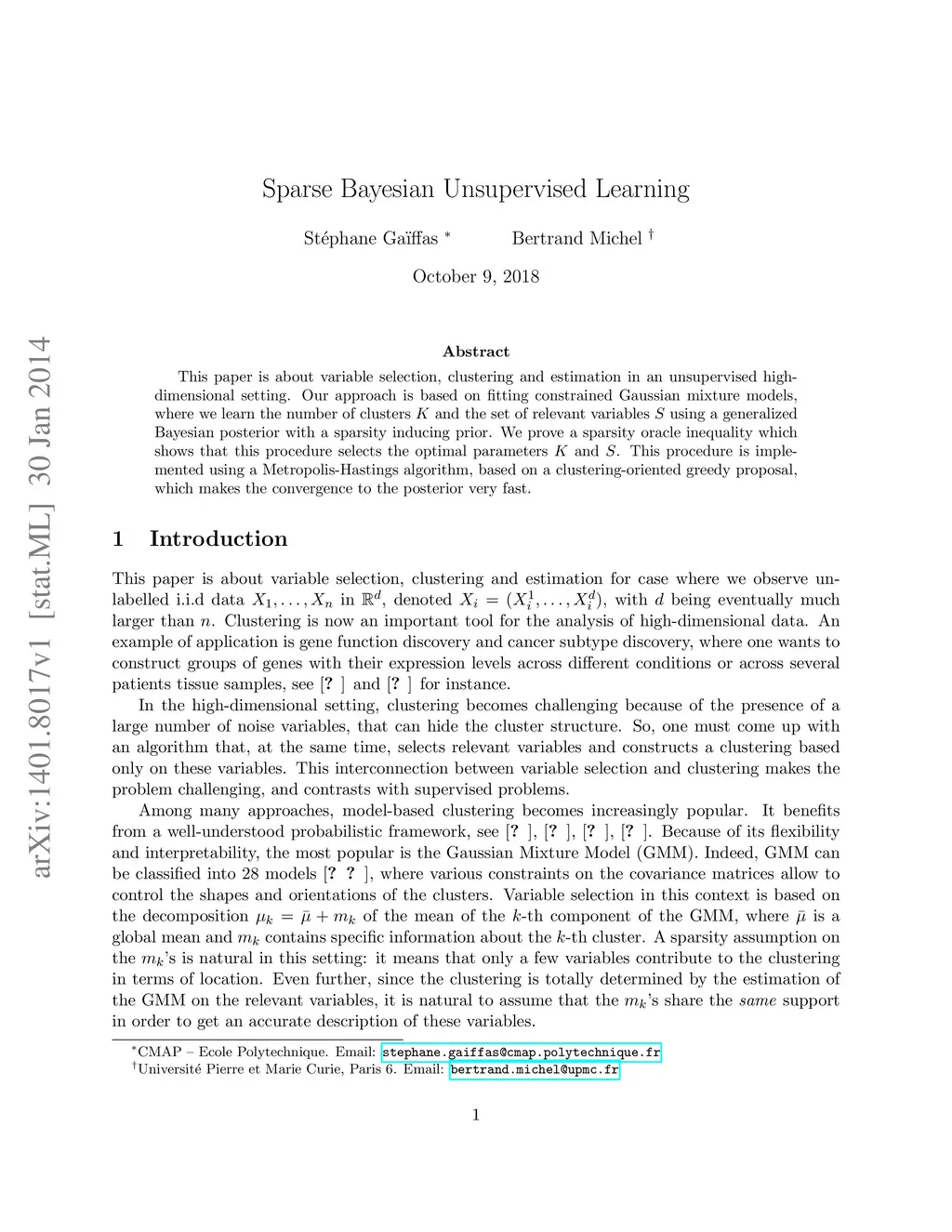 Sparse Bayesian Unsupervised Learning