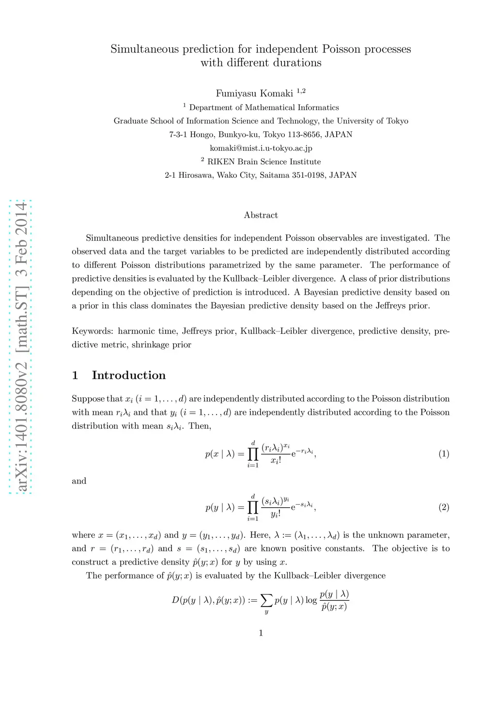 Journal of Multivariate Analysis (JMA), 2014