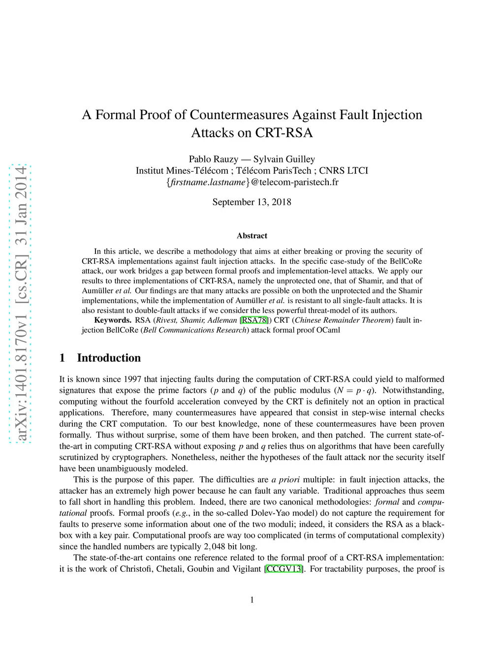 Journal of Cryptographic Engineering (JCE), 2014