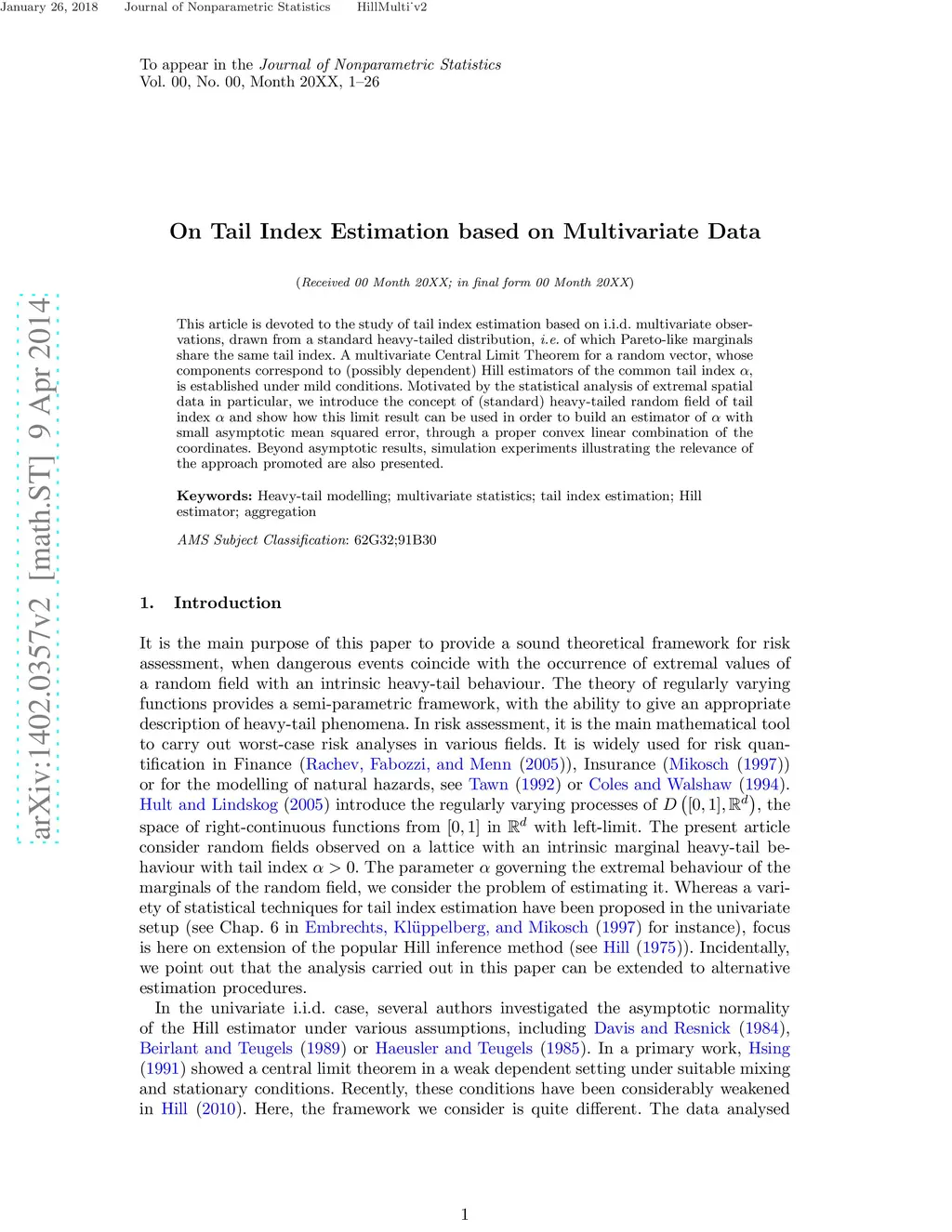 This article is devoted to the study of tail index estimation based on i.i.d. multivariate observations, drawn from a standard heavy-tailed distribution, i.e. of which 1-d Pareto-like marginals share the same tail index. A multivariate Central Limit Theorem for a random vector, whose components correspond to (possibly dependent) Hill estimators of the common shape index alpha, is established under mild conditions. Motivated by the statistical analysis of extremal spatial data in particular, we introduce the concept of (standard) heavy-tailed random field of tail index alpha and show how this limit result can be used in order to build an estimator of alpha with small asymptotic mean squared error, through a proper convex linear combination of the coordinates. Beyond asymptotic results, simulation experiments illustrating the relevance of the approach promoted are also presented.