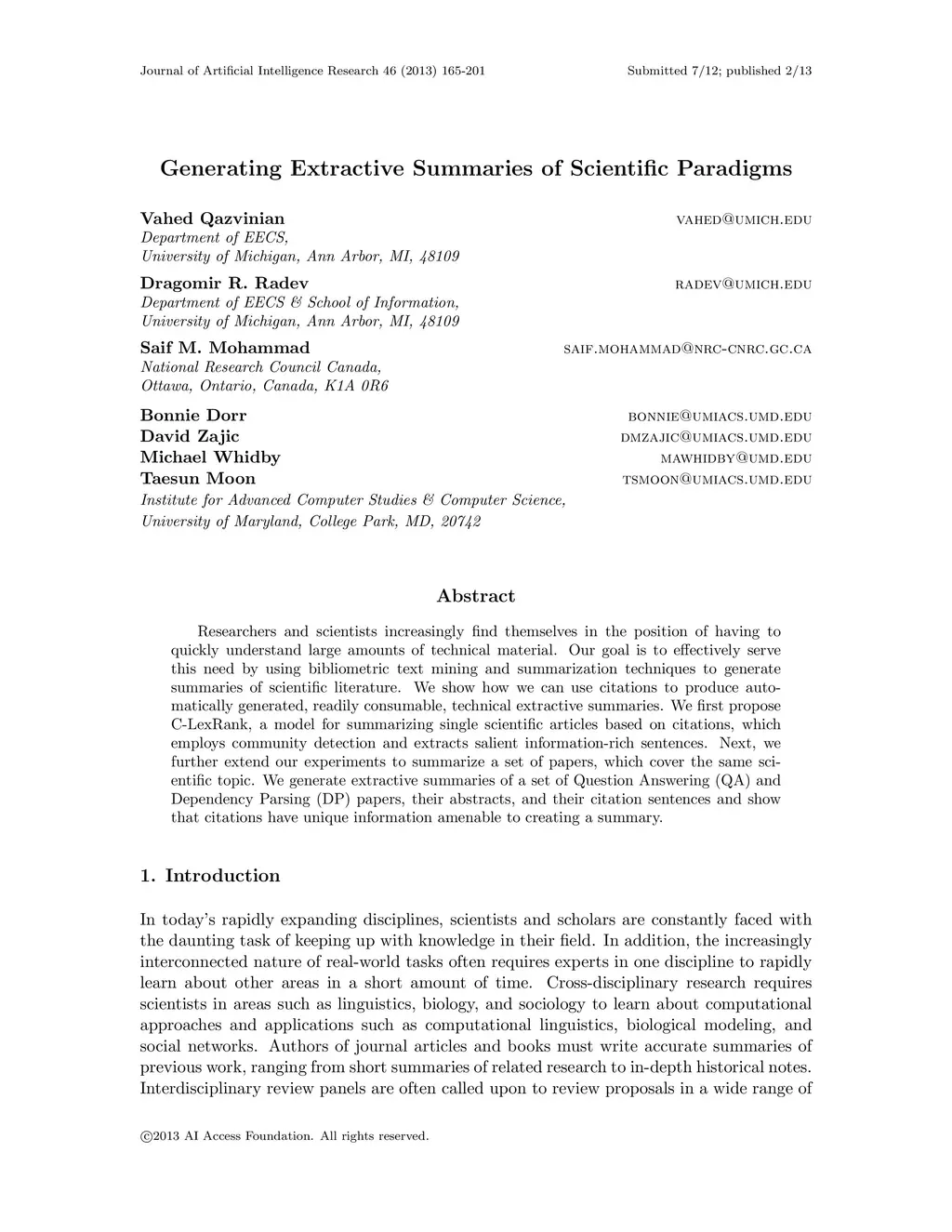 Generating Extractive Summaries of Scientific Paradigms