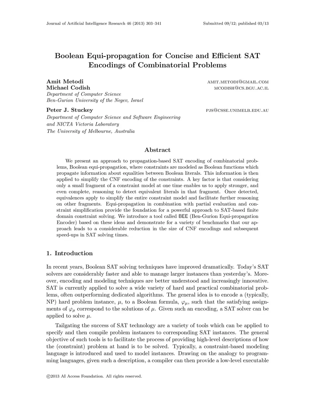 Boolean Equi-propagation for Concise and Efficient SAT Encodings of