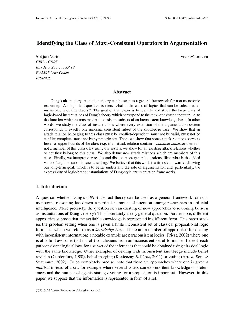 Dung's abstract argumentation theory can be seen as a general framework for non-monotonic reasoning. An important question is then: what is the class of logics that can be subsumed as instantiations of this theory? The goal of this paper is to identify and study the large class of logic-based instantiations of Dung's theory which correspond to the maxi-consistent operator, i.e. to the function which returns maximal consistent subsets of an inconsistent knowledge base. In other words, we study the class of instantiations where very extension of the argumentation system corresponds to exactly one maximal consistent subset of the knowledge base. We show that an attack relation belonging to this class must be conflict-dependent, must not be valid, must not be conflict-complete, must not be symmetric etc. Then, we show that some attack relations serve as lower or upper bounds of the class (e.g. if an attack relation contains canonical undercut then it is not a member of this class). By using our results, we show for all existing attack relations whether or not they belong to this class. We also define new attack relations which are members of this class. Finally, we interpret our results and discuss more general questions, like: what is the added value of argumentation in such a setting? We believe that this work is a first step towards achieving our long-term goal, which is to better understand the role of argumentation and, particularly, the expressivity of logic-based instantiations of Dung-style argumentation frameworks.