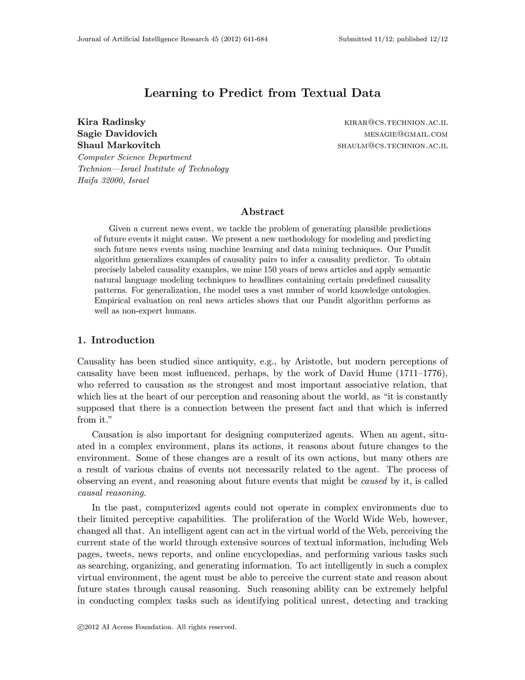 Journal of Artificial Intelligence Research (JAIR), 2012