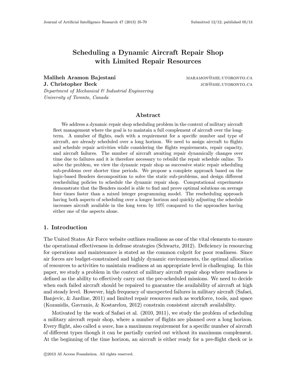 Scheduling a Dynamic Aircraft Repair Shop with Limited Repair Resources