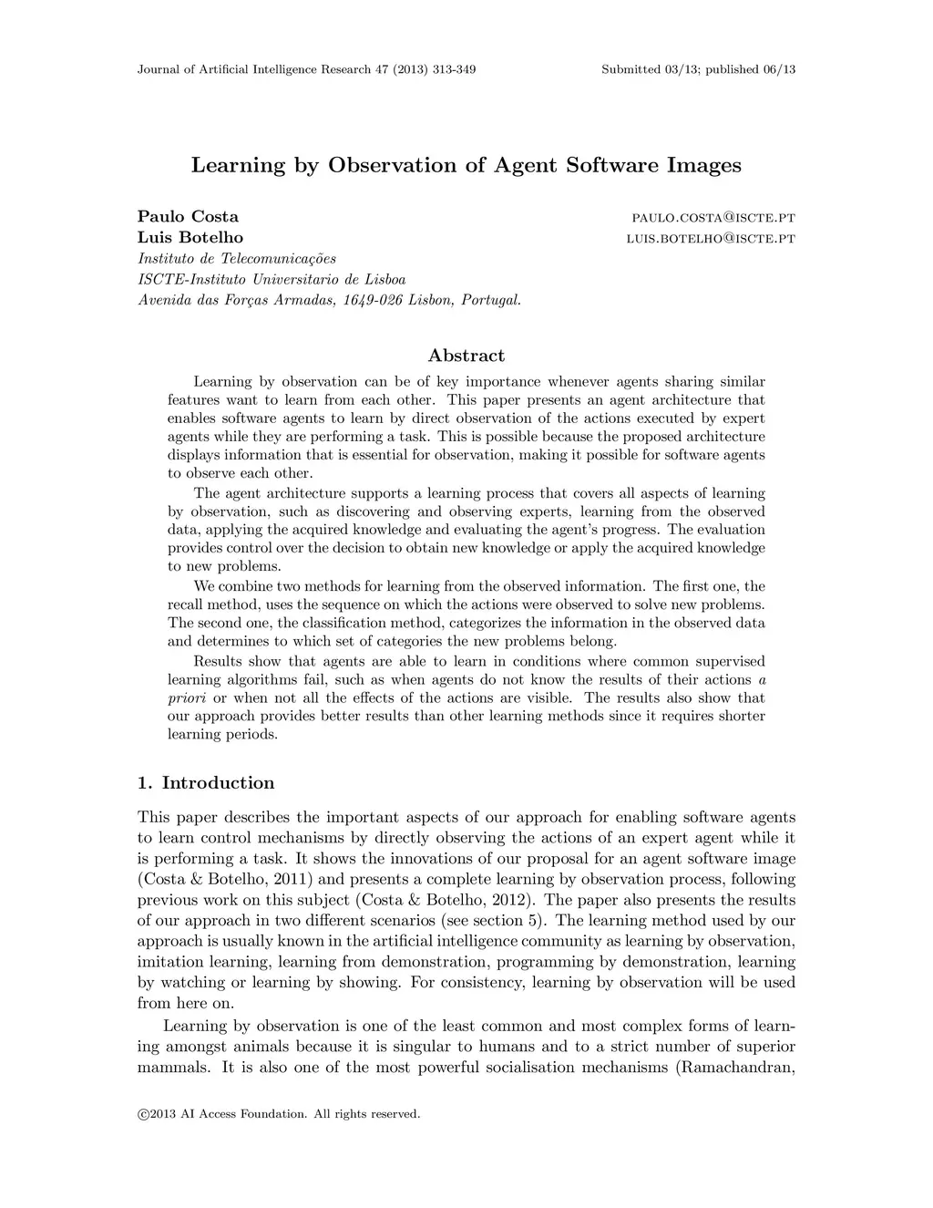 Learning by Observation of Agent Software Images