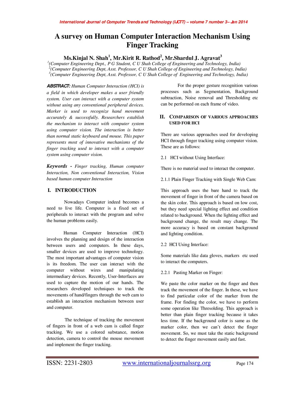 Human Computer Interaction (HCI) is a field in which developer makes a user friendly system. User can interact with a computer system without using any conventional peripheral devices. Marker is used to recognize hand movement accurately & successfully. Researchers establish the mechanism to interact with computer system using computer vision. The interaction is better than normal static keyboard and mouse. This paper represents most of innovative mechanisms of the finger tracking used to interact with a computer system using computer vision.