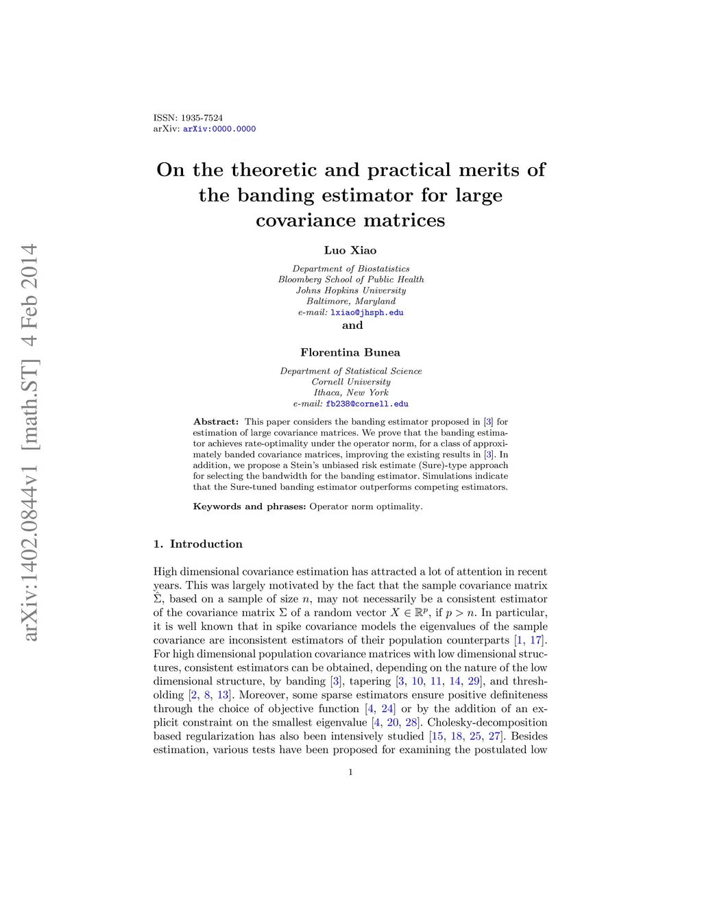 This paper considers the banding estimator proposed in Bickel and Levina (2008) for estimation of large covariance matrices. We prove that the banding estimator achieves rate-optimality under the operator norm, for a class of approximately banded covariance matrices, improving the existing results in Bickel and Levina (2008). In addition, we propose a Stein's unbiased risk estimate (Sure)-type approach for selecting the bandwidth for the banding estimator. Simulations indicate that the Sure-tuned banding estimator outperforms competing estimators.