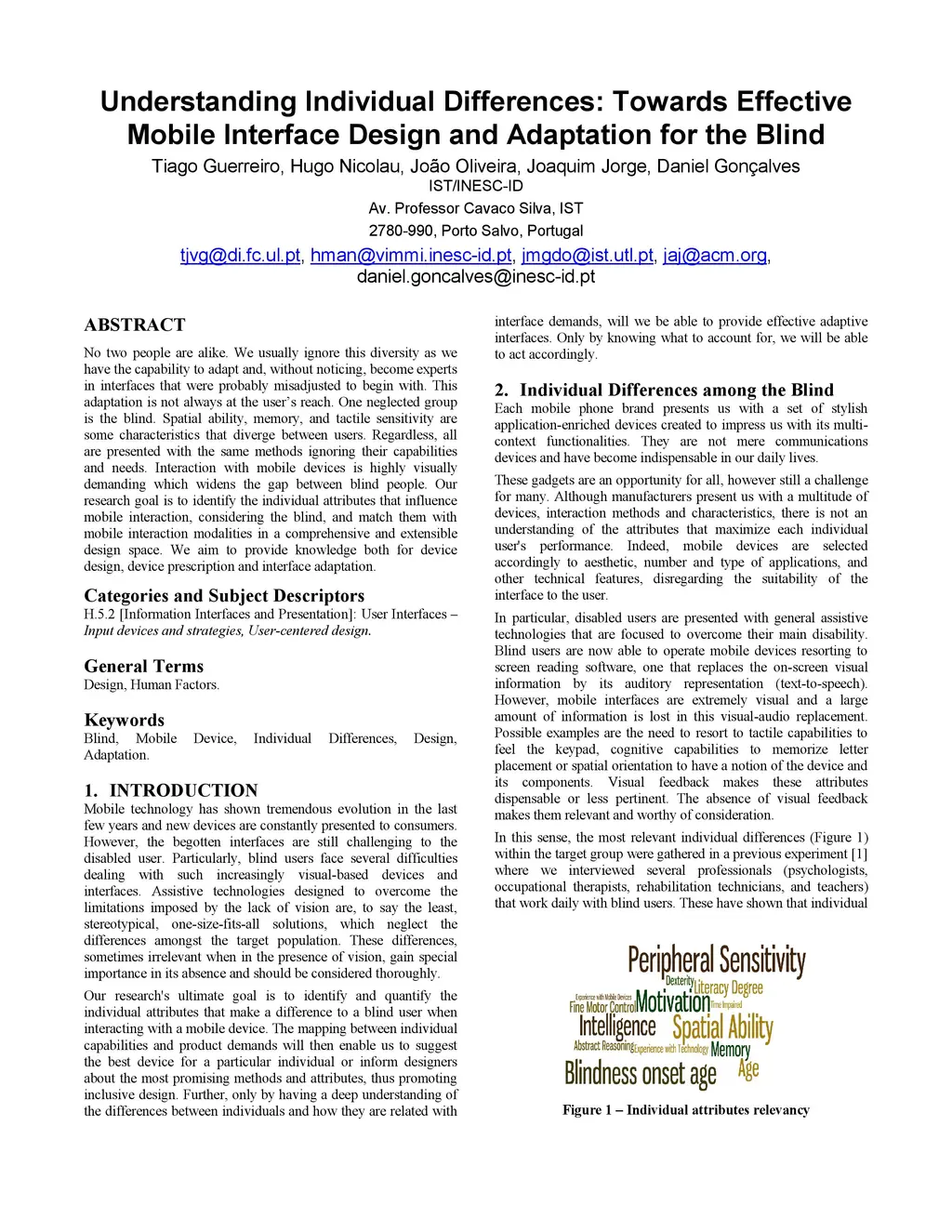 No two people are alike. We usually ignore this diversity as we have the capability to adapt and, without noticing, become experts in interfaces that were probably misadjusted to begin with. This adaptation is not always at the user's reach. One neglected group is the blind. Spatial ability, memory, and tactile sensitivity are some characteristics that diverge between users. Regardless, all are presented with the same methods ignoring their capabilities and needs. Interaction with mobile devices is highly visually demanding which widens the gap between blind people. Our research goal is to identify the individual attributes that influence mobile interaction, considering the blind, and match them with mobile interaction modalities in a comprehensive and extensible design space. We aim to provide knowledge both for device design, device prescription and interface adaptation.