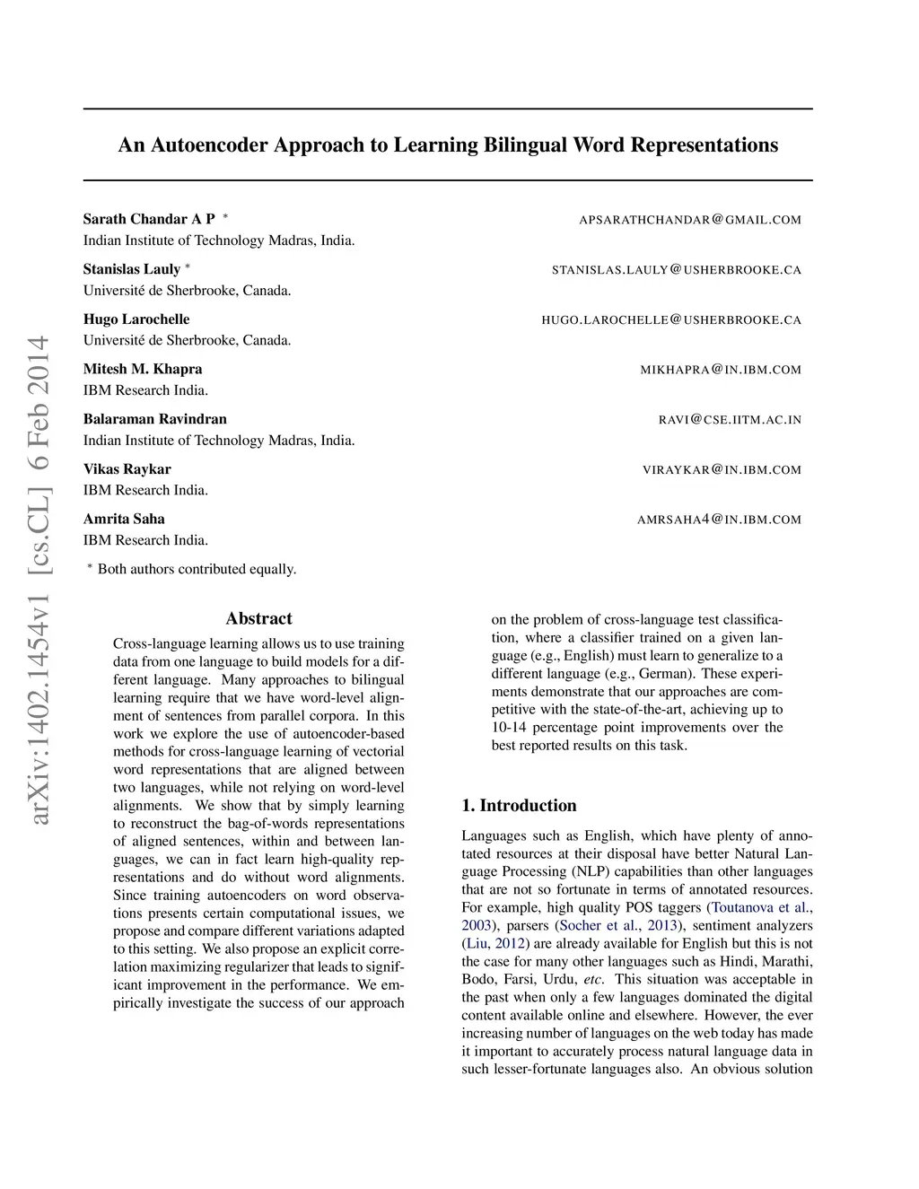 An Autoencoder Approach to Learning Bilingual Word Representations
