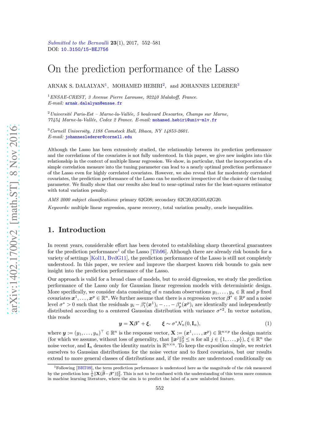 Although the Lasso has been extensively studied, the relationship between its prediction performance and the correlations of the covariates is not fully understood. In this paper, we give new insights into this relationship in the context of multiple linear regression. We show, in particular, that the incorporation of a simple correlation measure into the tuning parameter can lead to a nearly optimal prediction performance of the Lasso even for highly correlated covariates. However, we also reveal that for moderately correlated covariates, the prediction performance of the Lasso can be mediocre irrespective of the choice of the tuning parameter. We finally show that our results also lead to near-optimal rates for the least-squares estimator with total variation penalty.