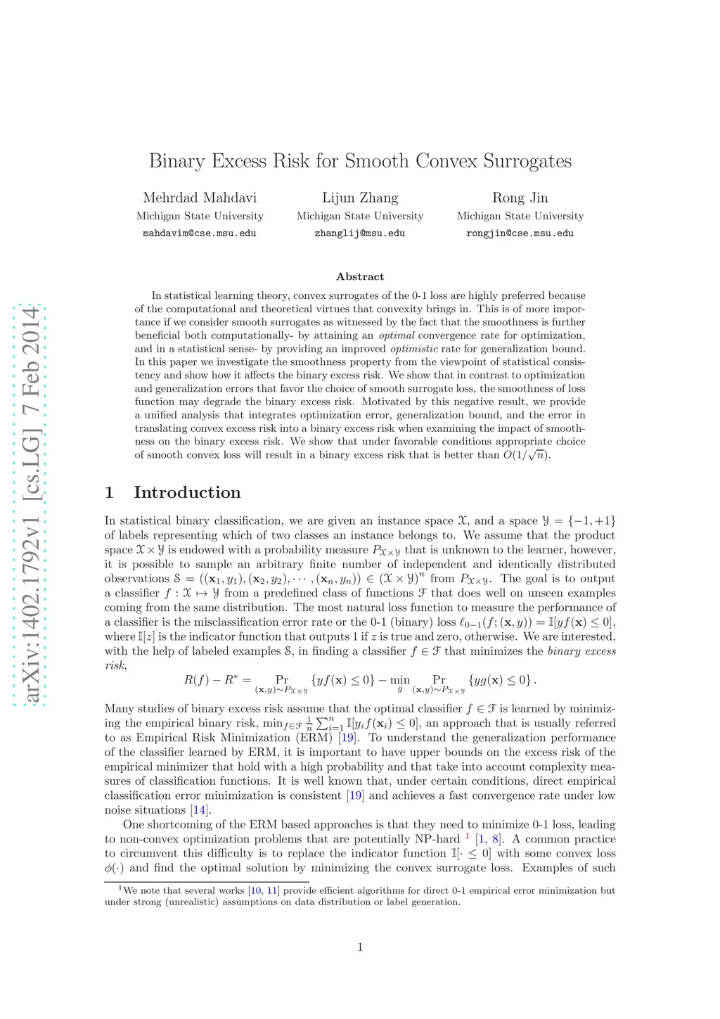 Binary Excess Risk for Smooth Convex Surrogates