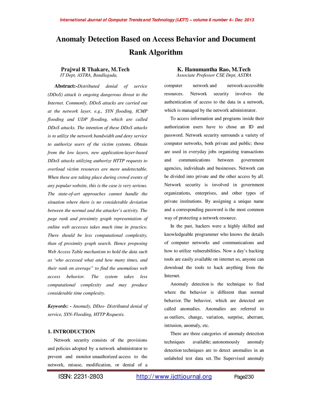 Anomaly Detection Based on Access Behavior and Document Rank Algorithm