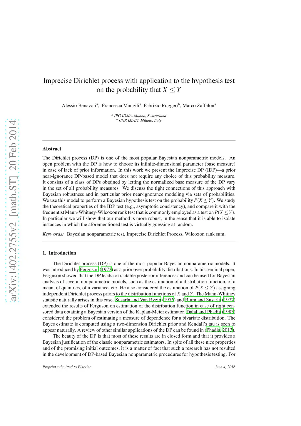 Imprecise Dirichlet Process with application to the hypothesis test on