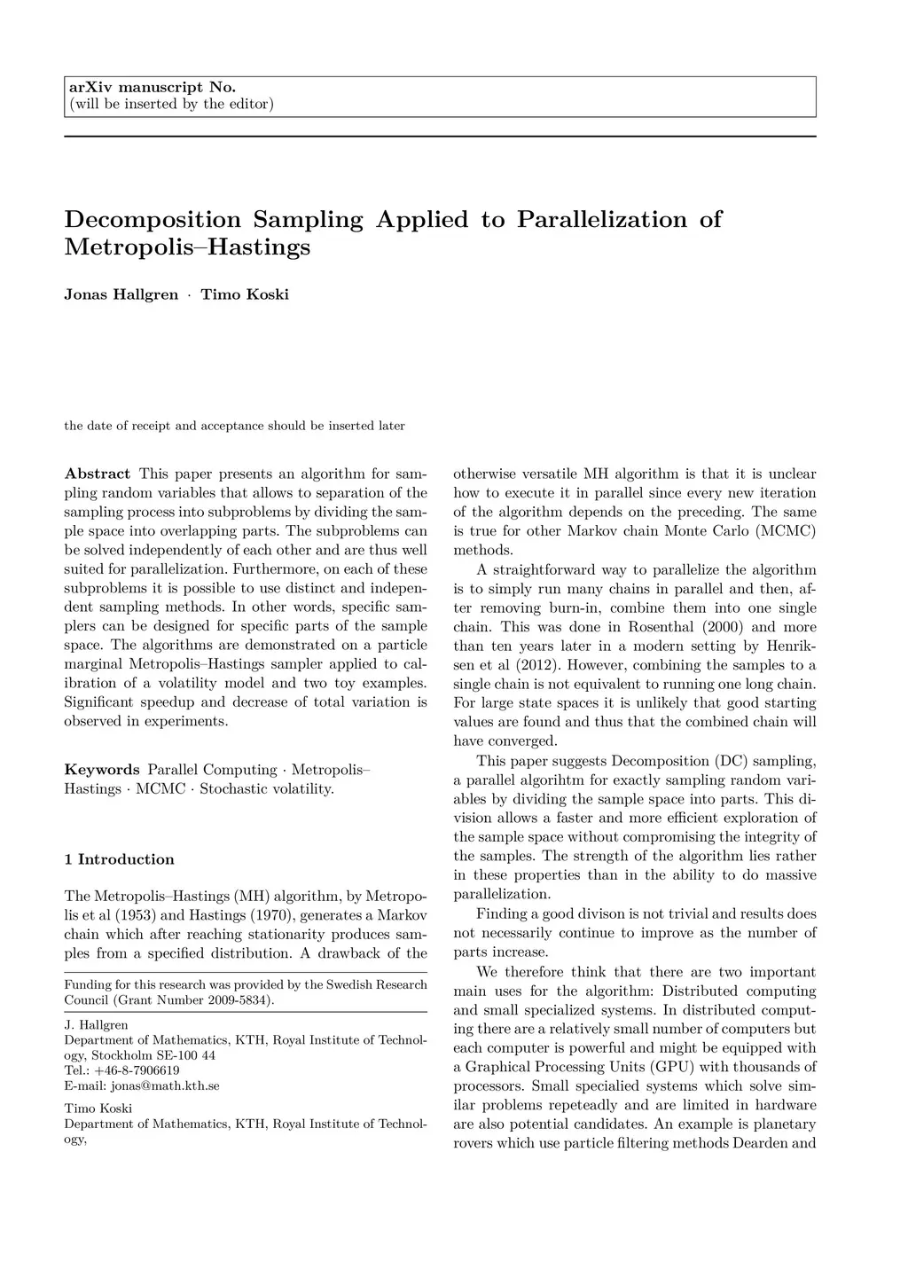 Decomposition Sampling applied to Parallelization of Metropolis-Hastings