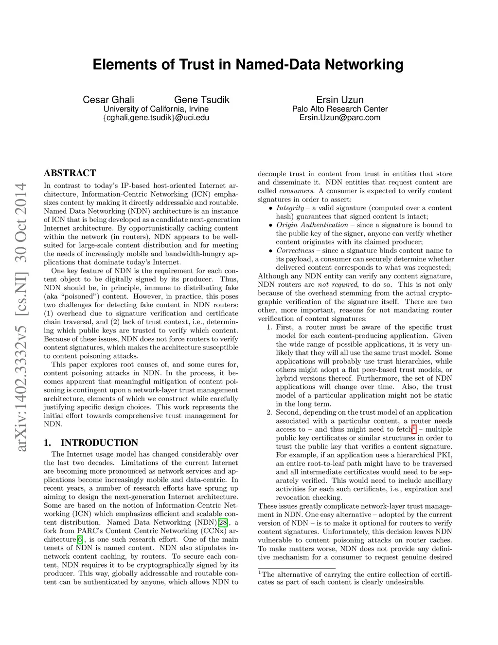 Elements of Trust in Named-Data Networking