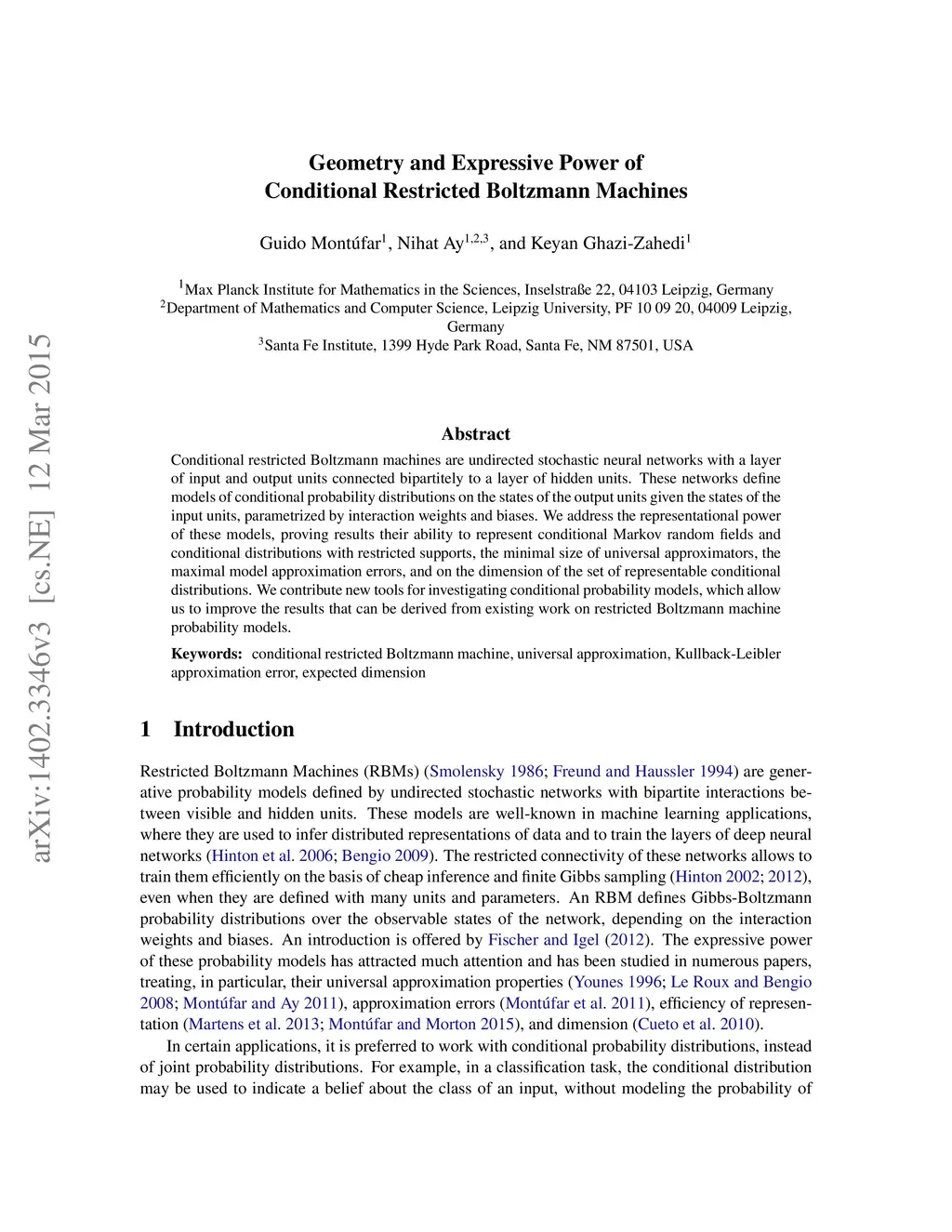 Geometry and Expressive Power of Conditional Restricted Boltzmann