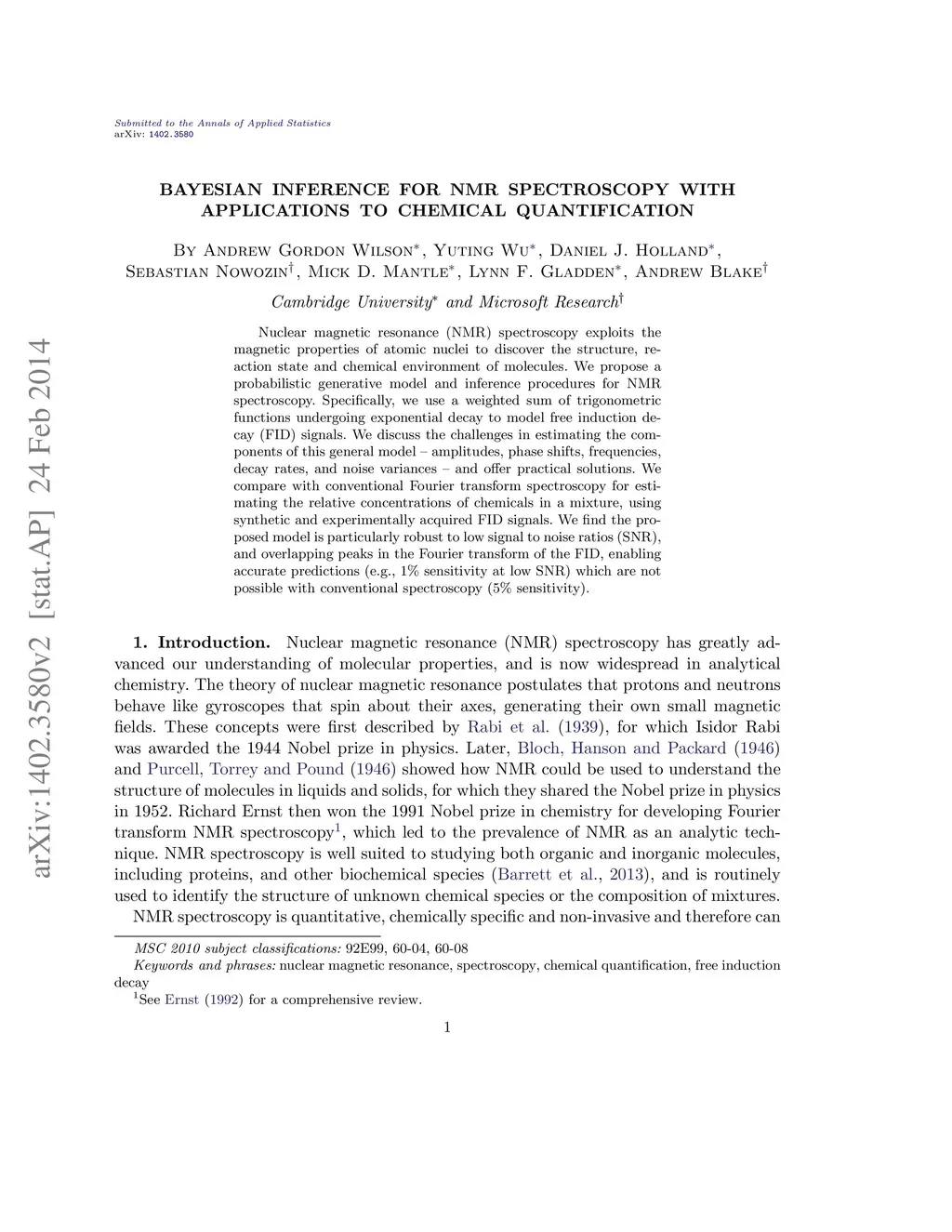 Bayesian Inference for NMR Spectroscopy with Applications to Chemical