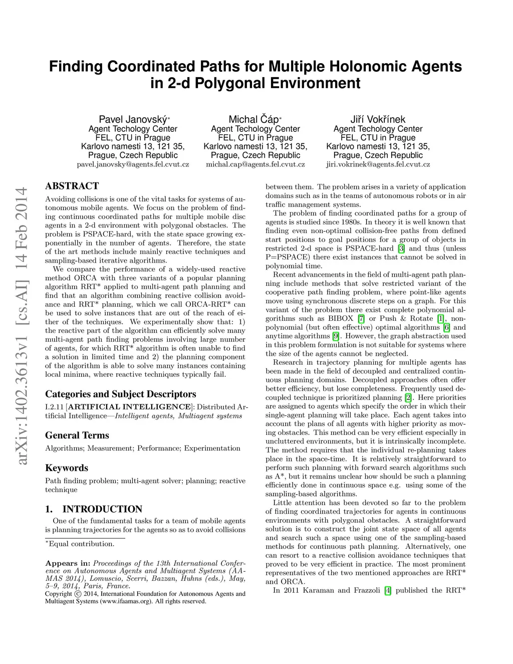 Finding Coordinated Paths for Multiple Holonomic Agents in 2-d Polygonal