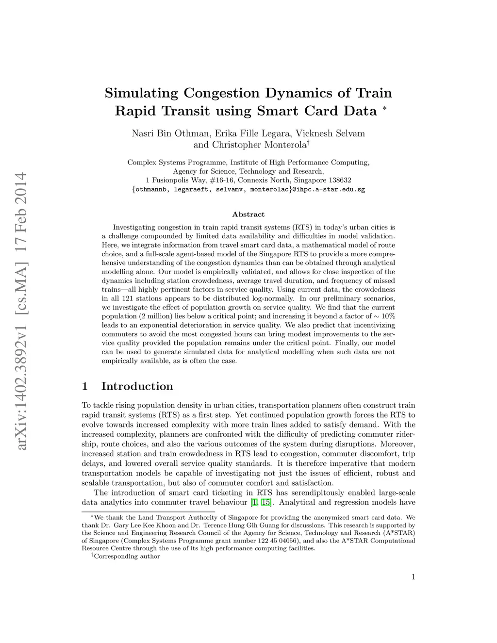 Simulating Congestion Dynamics of Train Rapid Transit using Smart Card