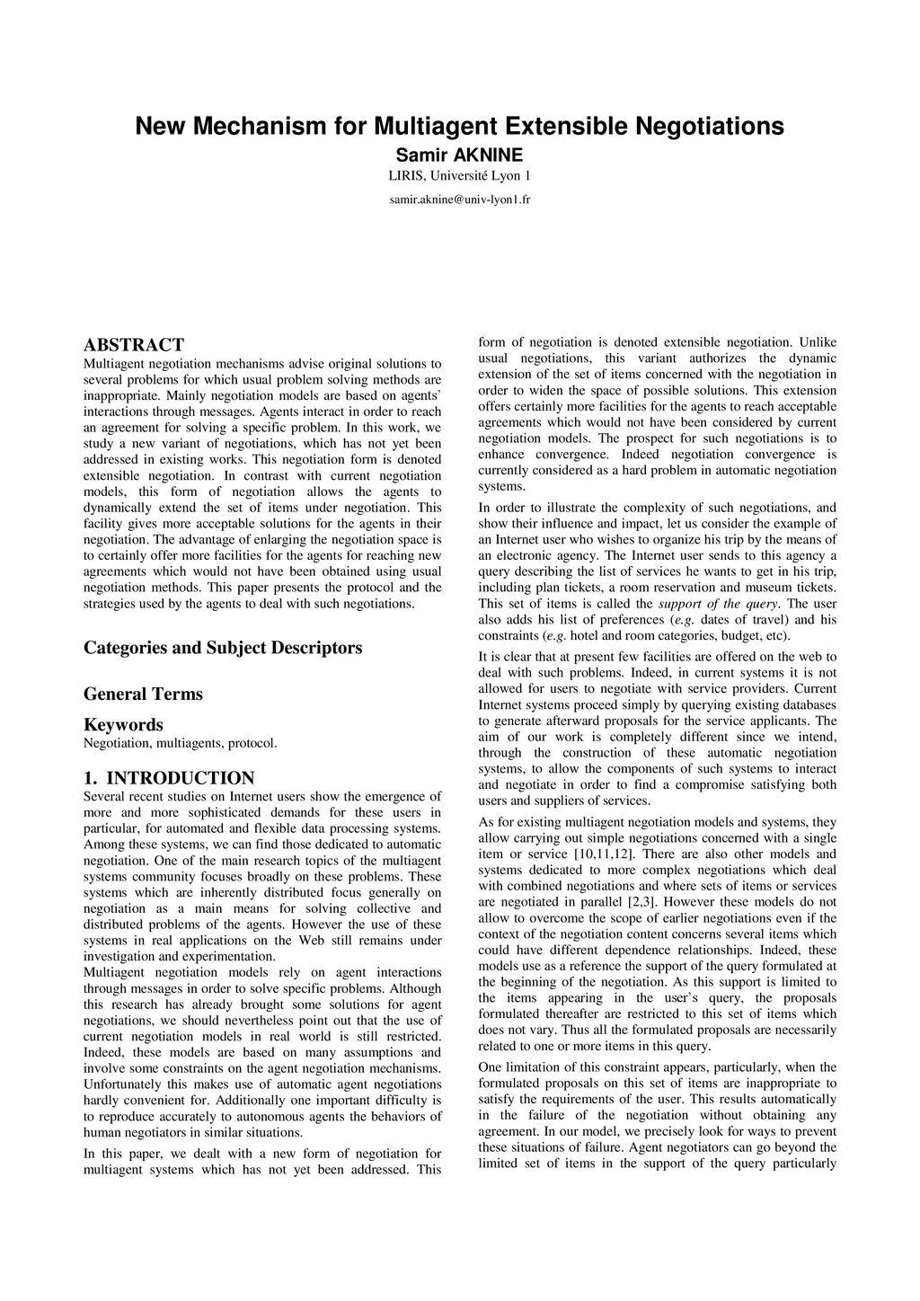 Multiagent negotiation mechanisms advise original solutions to several problems for which usual problem solving methods are inappropriate. Mainly negotiation models are based on agents' interactions through messages. Agents interact in order to reach an agreement for solving a specific problem. In this work, we study a new variant of negotiations, which has not yet been addressed in existing works. This negotiation form is denoted extensible negotiation. In contrast with current negotiation models, this form of negotiation allows the agents to dynamically extend the set of items under negotiation. This facility gives more acceptable solutions for the agents in their negotiation. The advantage of enlarging the negotiation space is to certainly offer more facilities for the agents for reaching new agreements which would not have been obtained using usual negotiation methods. This paper presents the protocol and the strategies used by the agents to deal with such negotiations.