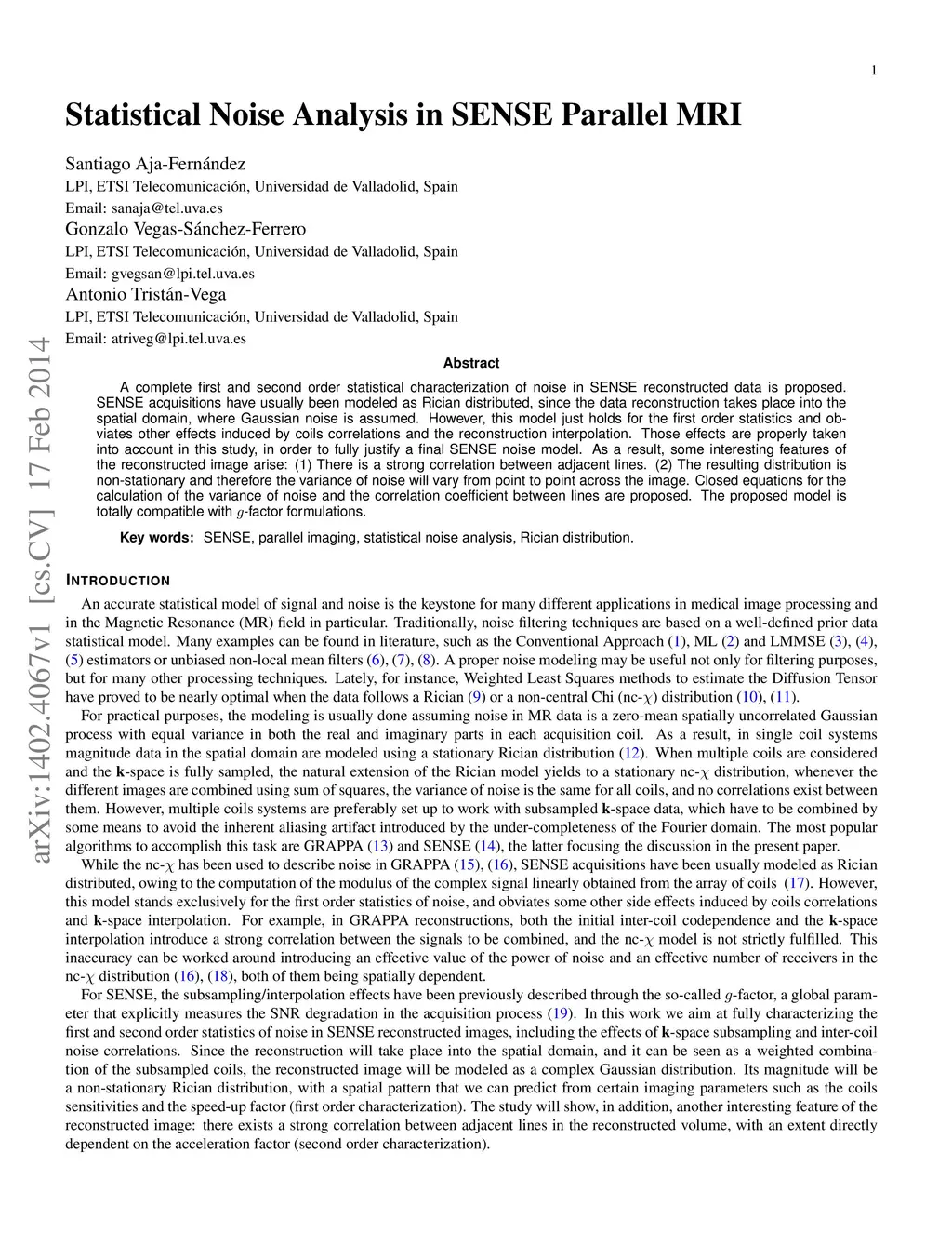 Statistical Noise Analysis in SENSE Parallel MRI