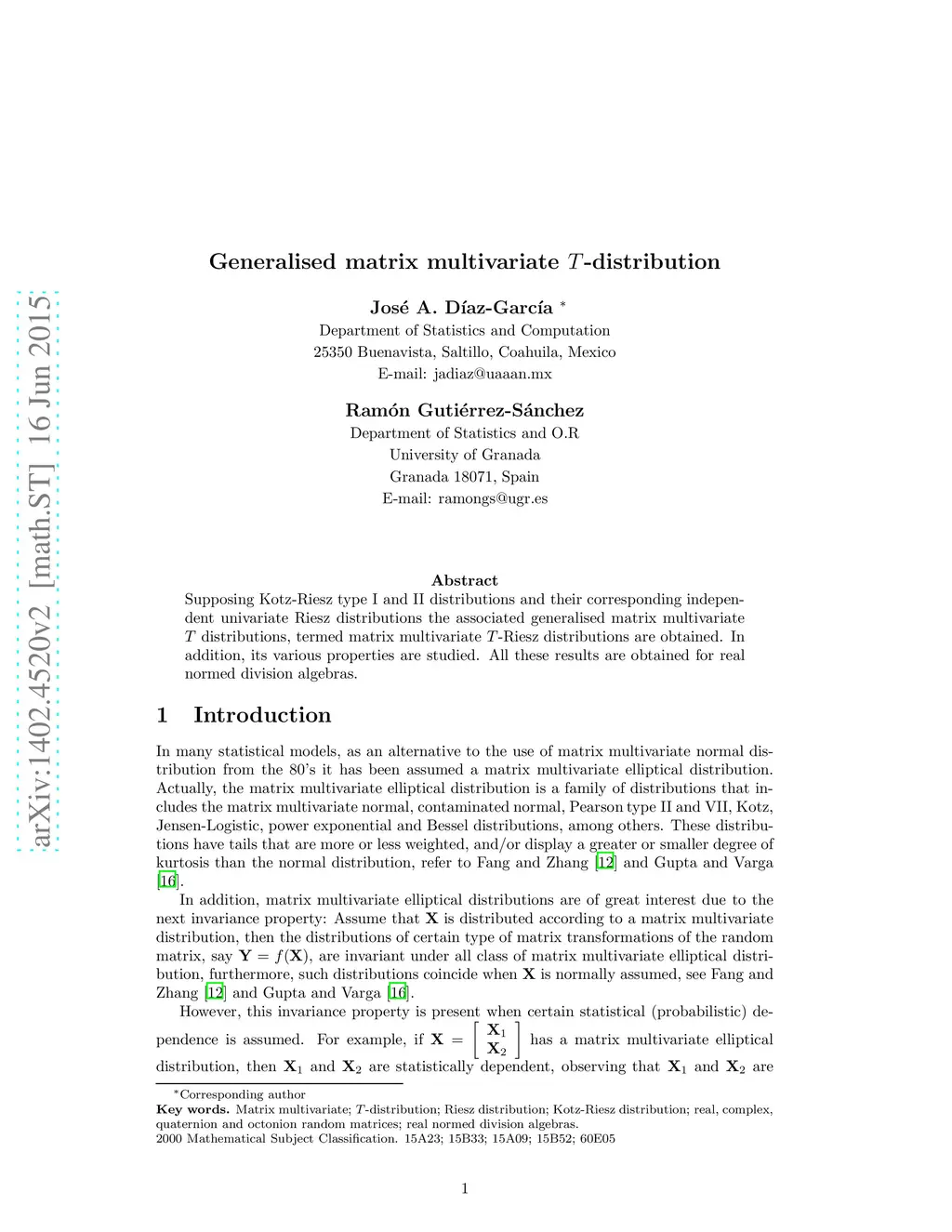 Supposing Kotz-Riesz type I and II distributions and their corresponding independent univariate Riesz distributions the associated generalised matrix multivariate T distributions, termed matrix multivariate T-Riesz distributions are obtained. In addition, its various properties are studied. All these results are obtained for real normed division algebras.