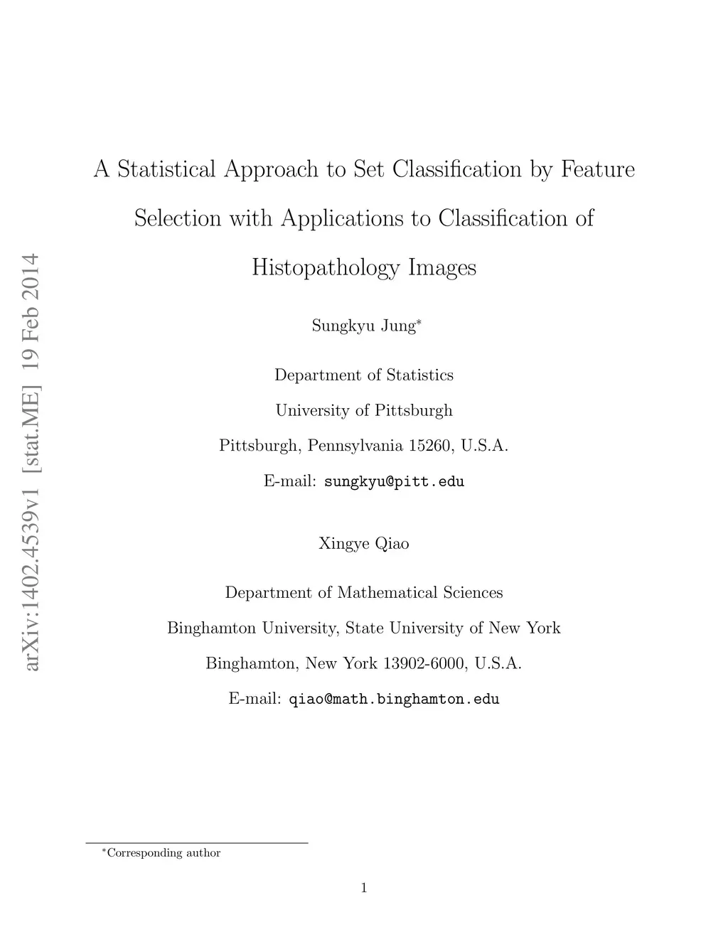 Set classification problems arise when classification tasks are based on sets of observations as opposed to individual observations. In set classification, a classification rule is trained with sets of observations, where each set is labeled with class information, and the prediction of a class label is performed also with a set of observations. Data sets for set classification appear, for example, in diagnostics of disease based on multiple cell nucleus images from a single tissue. Relevant statistical models for set classification are introduced, which motivate a set classification framework based on context-free feature extraction. By understanding a set of observations as an empirical distribution, we employ a data-driven method to choose those features which contain information on location and major variation. In particular, the method of principal component analysis is used to extract the features of major variation. Multidimensional scaling is used to represent features as vector-valued points on which conventional classifiers can be applied. The proposed set classification approaches achieve better classification results than competing methods in a number of simulated data examples. The benefits of our method are demonstrated in an analysis of histopathology images of cell nuclei related to liver cancer.
