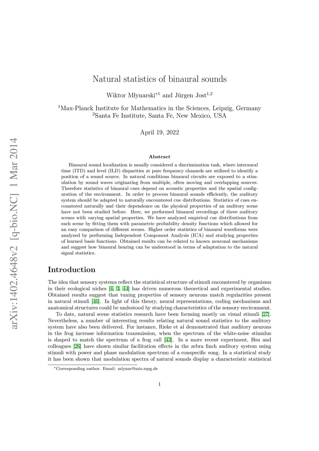 Natural statistics of binaural sounds