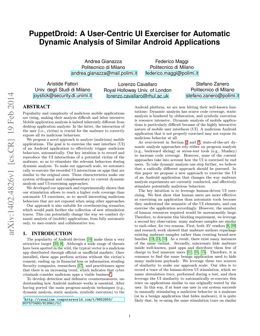 PuppetDroid: A User-Centric UI Exerciser for Automatic Dynamic Analysis