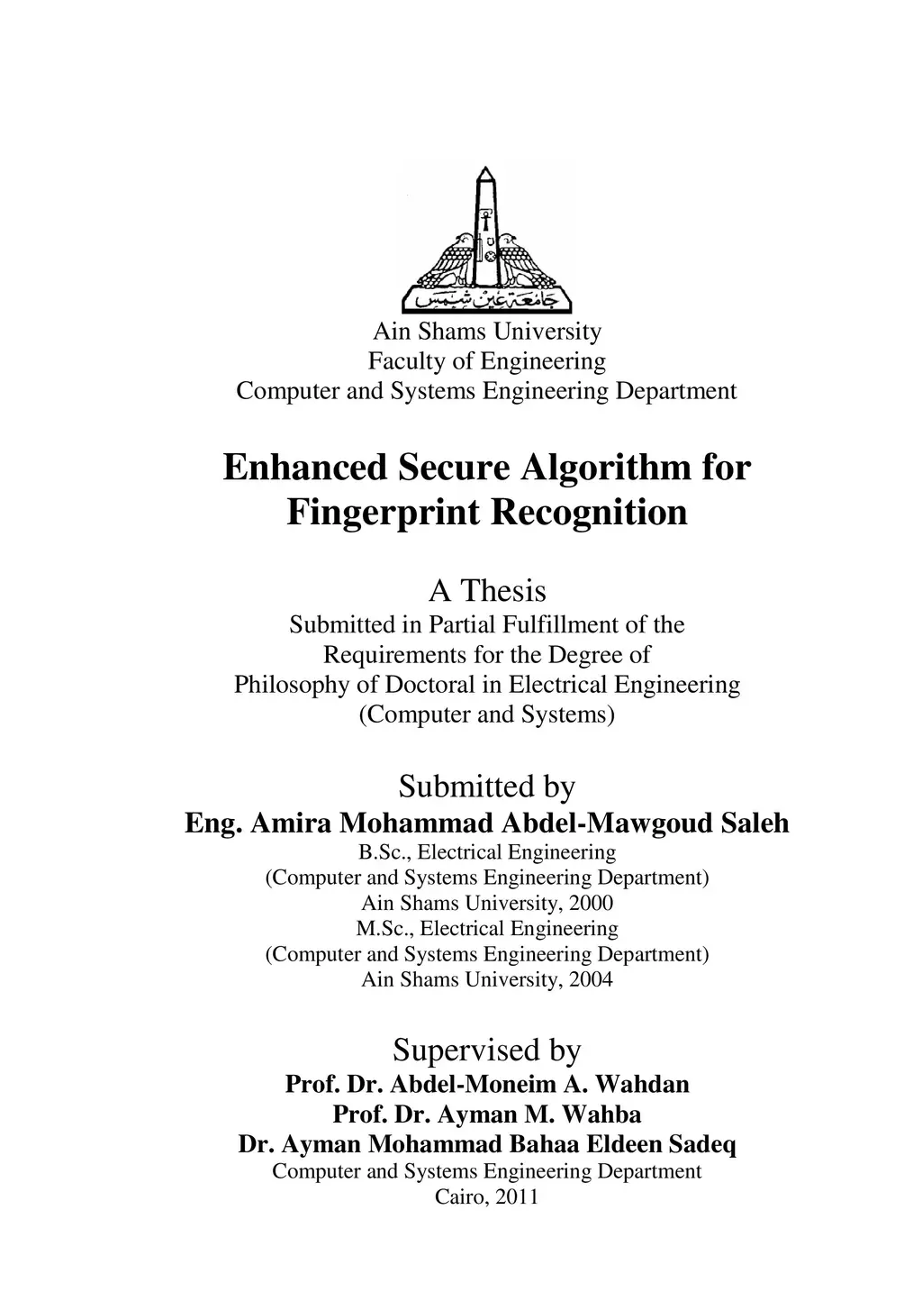 Enhanced Secure Algorithm for Fingerprint Recognition