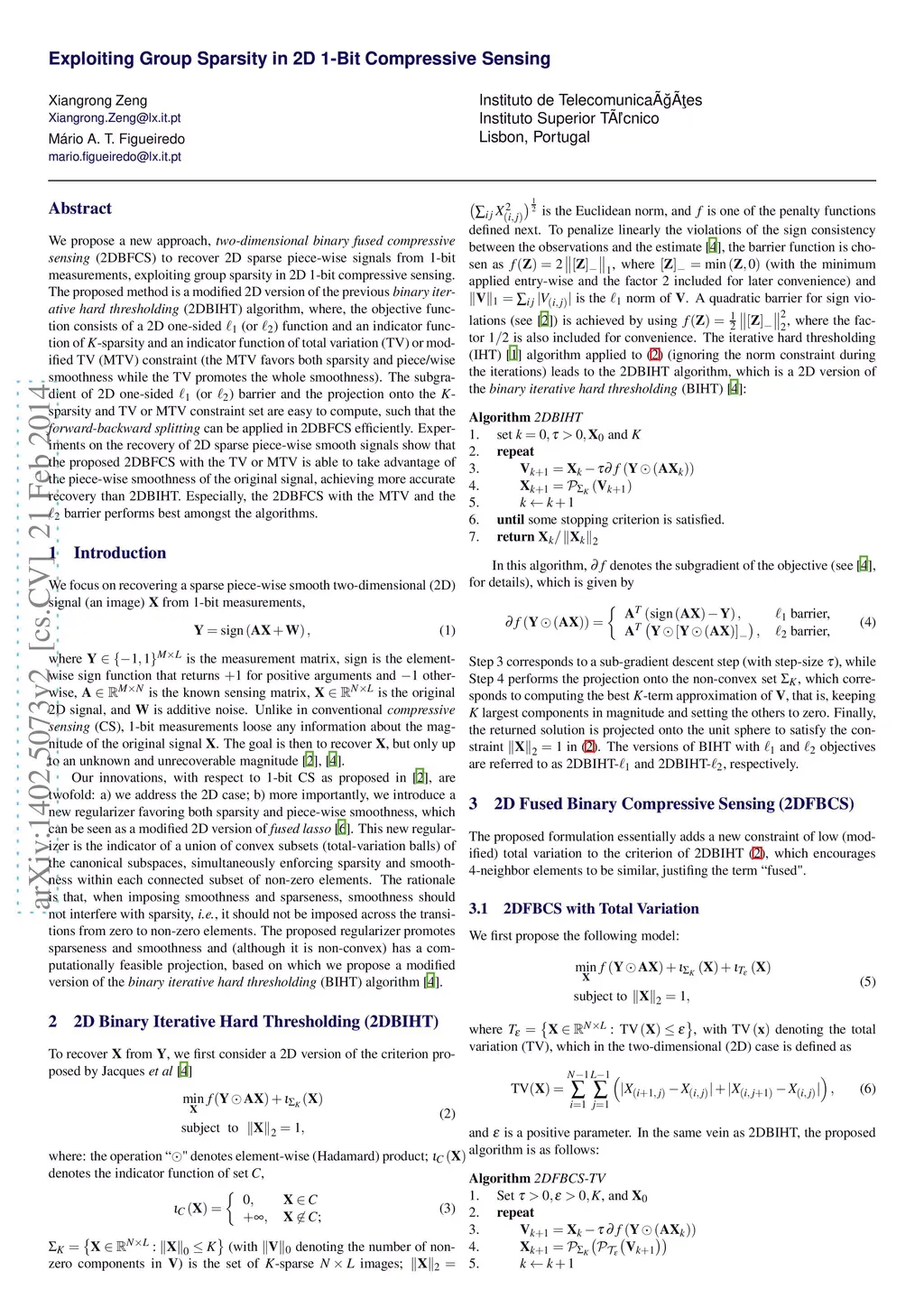 We propose a new approach, {\it two-dimensional fused binary compressive sensing} (2DFBCS) to recover 2D sparse piece-wise signals from 1-bit measurements, exploiting 2D group sparsity for 1-bit compressive sensing recovery. The proposed method is a modified 2D version of the previous {\it binary iterative hard thresholding} (2DBIHT) algorithm, where the objective function includes a 2D one-sided (or ) penalty function encouraging agreement with the observed data, an indicator function of -sparsity, and a total variation (TV) or modified TV (MTV) constraint. The subgradient of the 2D one-sided (or ) penalty and the projection onto the -sparsity and TV or MTV constraint can be computed efficiently, allowing the appliaction of algorithms of the {\it forward-backward splitting} (a.k.a. {\it iterative shrinkage-thresholding}) family. Experiments on the recovery of 2D sparse piece-wise smooth signals show that the proposed approach is able to take advantage of the piece-wise smoothness of the original signal, achieving more accurate recovery than 2DBIHT. More specifically, 2DFBCS with the MTV and the penalty performs best amongst the algorithms tested.