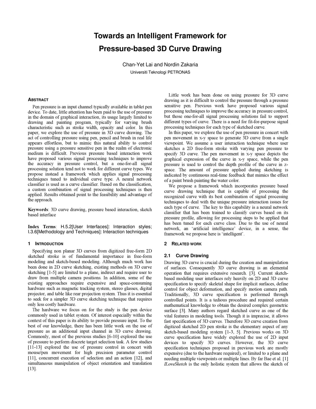 Towards an Intelligent Framework for Pressure-based 3D Curve Drawing