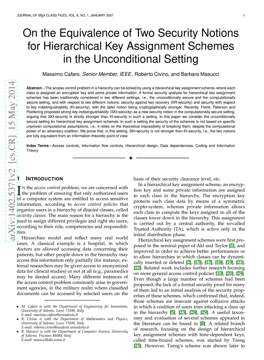 On the Equivalence of Two Security Notions for Hierarchical Key