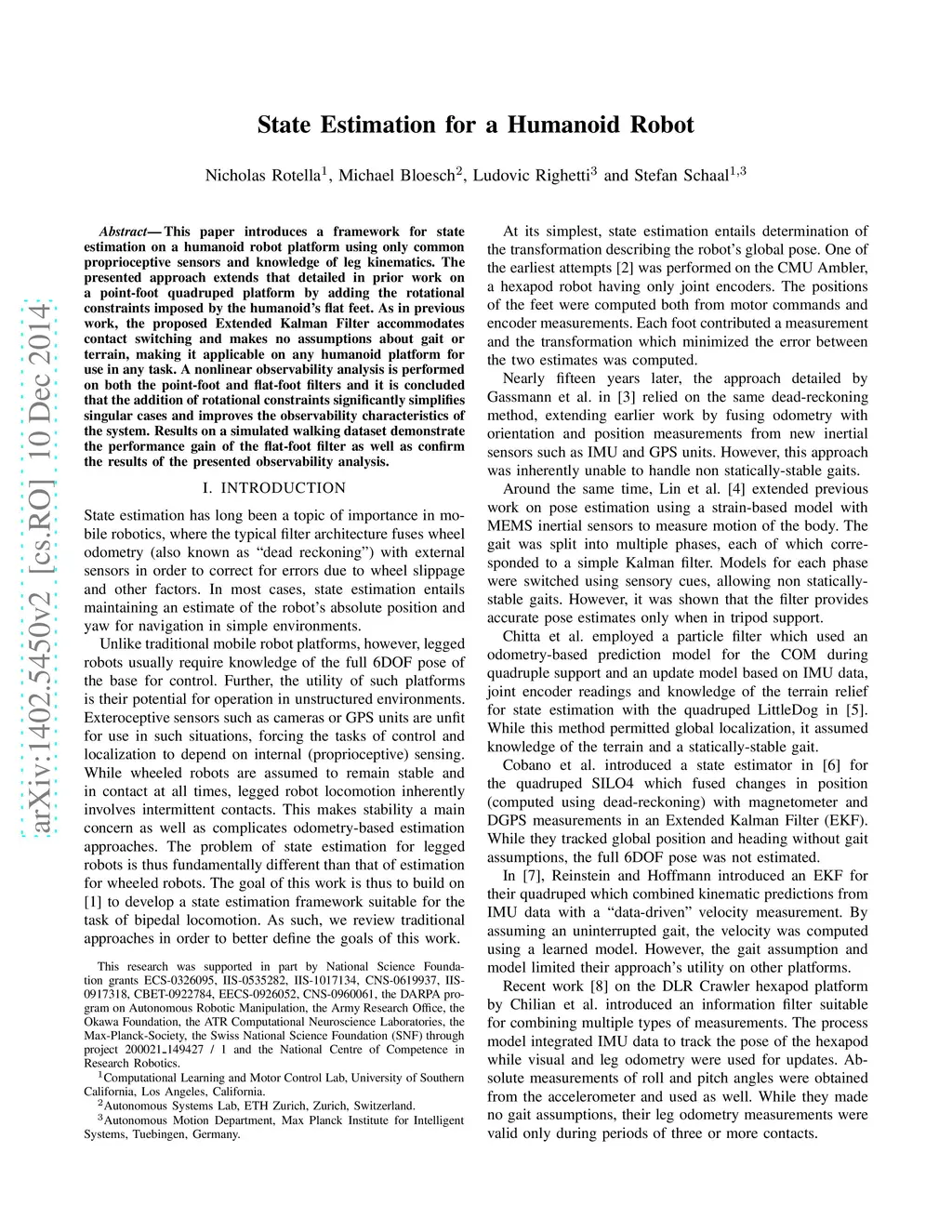 State Estimation for a Humanoid Robot