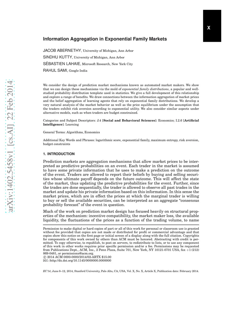 We consider the design of prediction market mechanisms known as automated market makers. We show that we can design these mechanisms via the mold of \emph{exponential family distributions}, a popular and well-studied probability distribution template used in statistics. We give a full development of this relationship and explore a range of benefits. We draw connections between the information aggregation of market prices and the belief aggregation of learning agents that rely on exponential family distributions. We develop a very natural analysis of the market behavior as well as the price equilibrium under the assumption that the traders exhibit risk aversion according to exponential utility. We also consider similar aspects under alternative models, such as when traders are budget constrained.