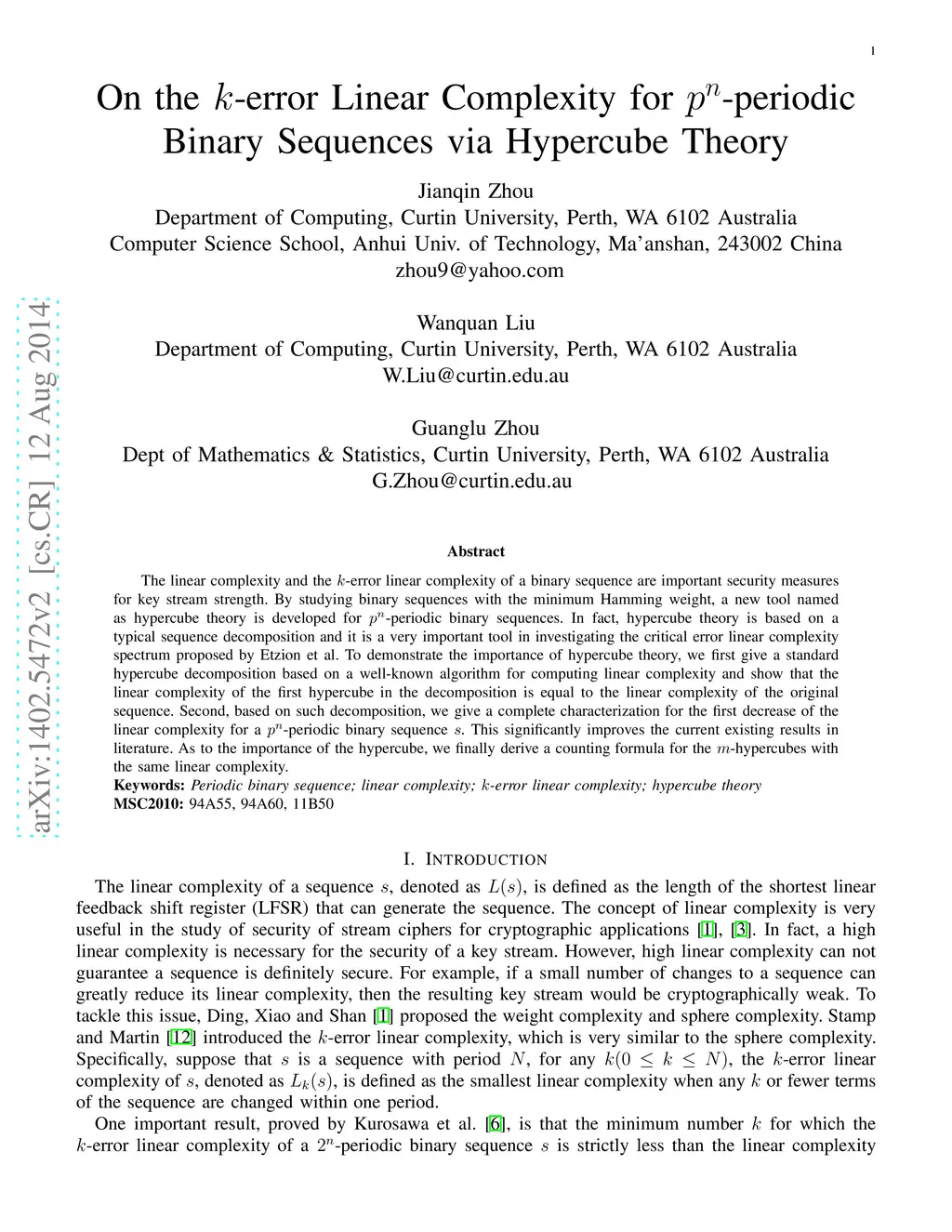 The linear complexity and the -error linear complexity of a binary sequence are important security measures for key stream strength. By studying binary sequences with the minimum Hamming weight, a new tool named as hypercube theory is developed for -periodic binary sequences. In fact, hypercube theory is based on a typical sequence decomposition and it is a very important tool in investigating the critical error linear complexity spectrum proposed by Etzion et al. To demonstrate the importance of hypercube theory, we first give a standard hypercube decomposition based on a well-known algorithm for computing linear complexity and show that the linear complexity of the first hypercube in the decomposition is equal to the linear complexity of the original sequence. Second, based on such decomposition, we give a complete characterization for the first decrease of the linear complexity for a -periodic binary sequence . This significantly improves the current existing results in literature. As to the importance of the hypercube, we finally derive a counting formula for the -hypercubes with the same linear complexity.