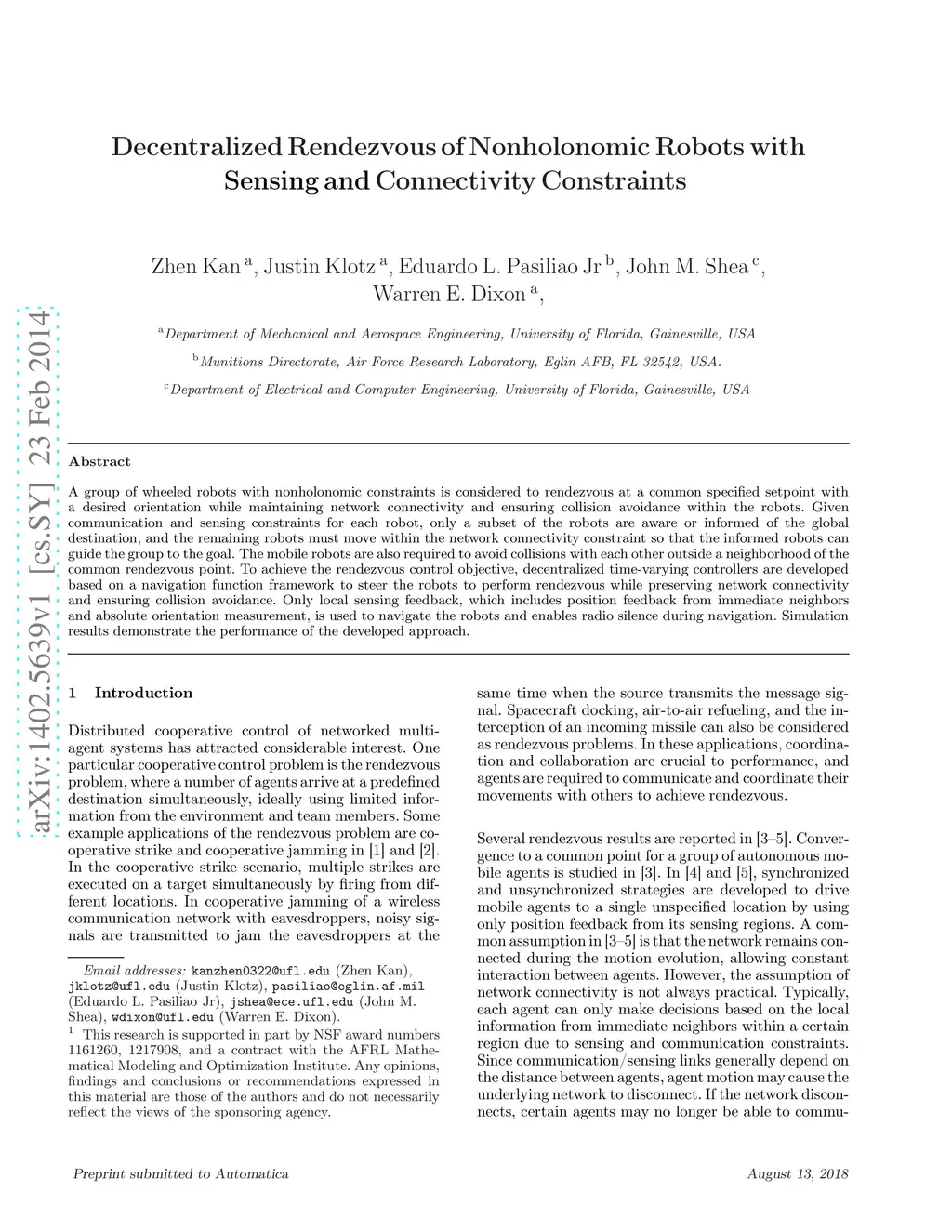 Decentralized Rendezvous of Nonholonomic Robots with Sensing and