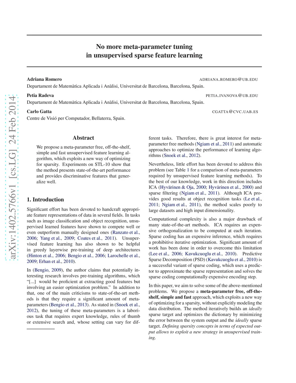 No more meta-parameter tuning in unsupervised sparse feature learning