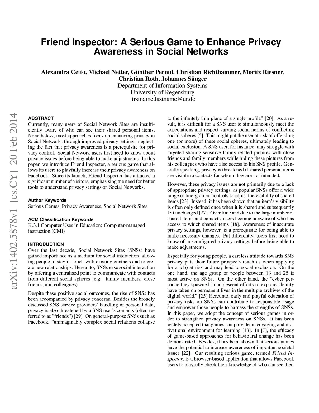 Friend Inspector: A Serious Game to Enhance Privacy Awareness in Social