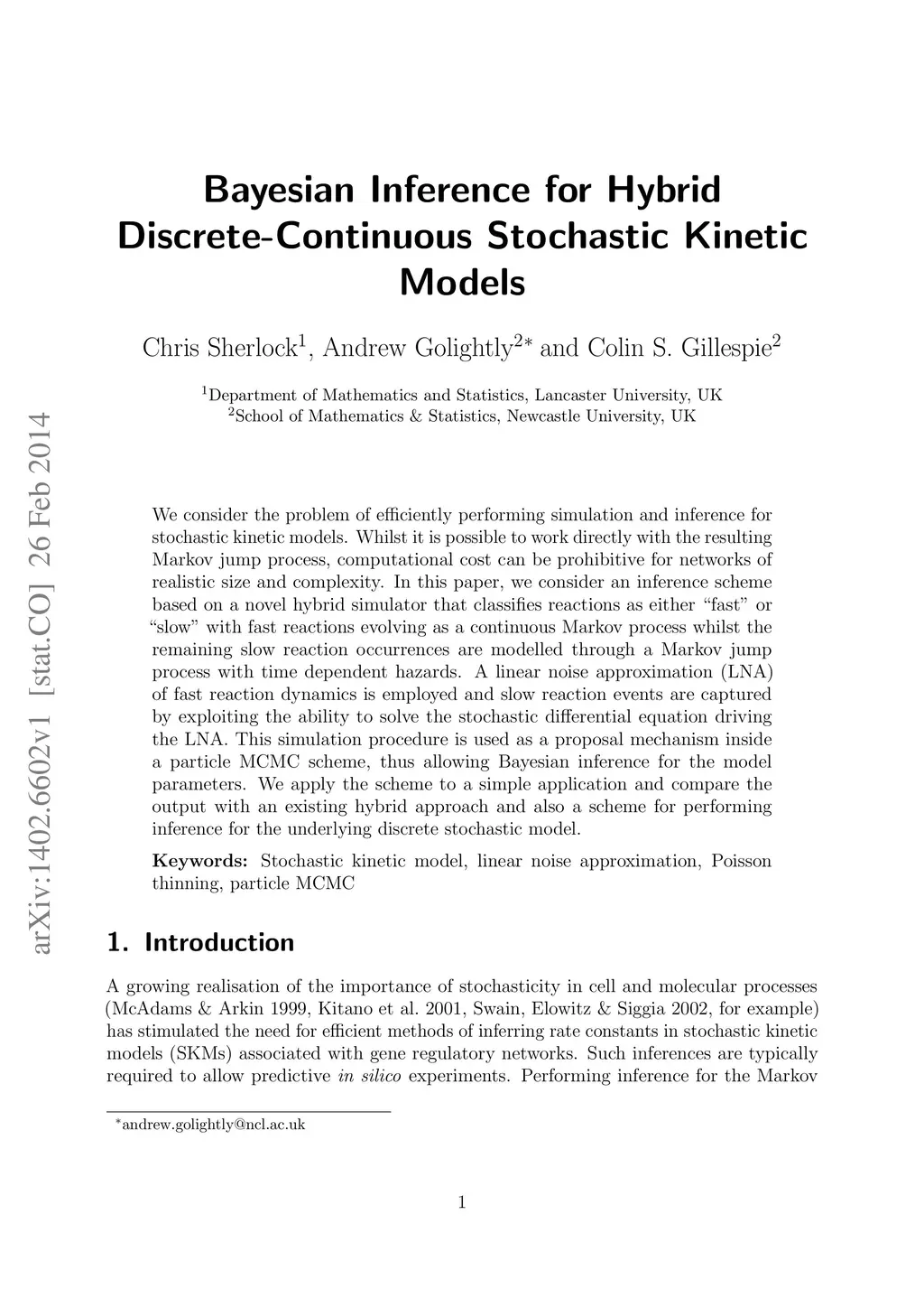 Bayesian Inference for Hybrid Discrete-Continuous Stochastic Kinetic