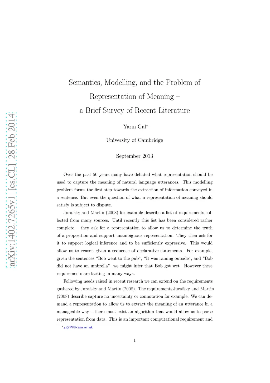 Semantics, Modelling, and the Problem of Representation of Meaning -- a