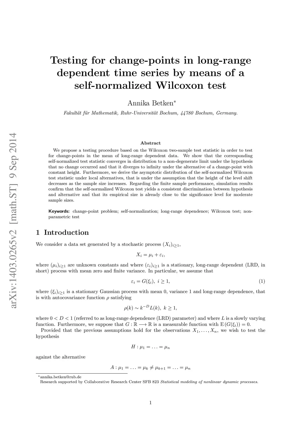 We propose a testing procedure based on the Wilcoxon two-sample test statistic in order to test for change-points in the mean of long-range dependent data. We show that the corresponding self-normalized test statistic converges in distribution to a non-degenerate limit under the hypothesis that no change occurred and that it diverges to infinity under the alternative of a change-point with constant height. Furthermore, we derive the asymptotic distribution of the self-normalized Wilcoxon test statistic under local alternatives, that is under the assumption that the height of the level shift decreases as the sample size increases. Regarding the finite sample performance, simulation results confirm that the self-normalized Wilcoxon test yields a consistent discrimination between hypothesis and alternative and that its empirical size is already close to the significance level for moderate sample sizes.