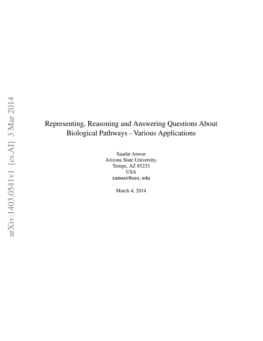 Biological organisms are composed of numerous interconnected biochemical processes. Diseases occur when normal functionality of these processes is disrupted. Thus, understanding these biochemical processes and their interrelationships is a primary task in biomedical research and a prerequisite for diagnosing diseases, and drug development. Scientists studying these processes have identified various pathways responsible for drug metabolism, and signal transduction, etc. Newer techniques and speed improvements have resulted in deeper knowledge about these pathways, resulting in refined models that tend to be large and complex, making it difficult for a person to remember all aspects of it. Thus, computer models are needed to analyze them. We want to build such a system that allows modeling of biological systems and pathways in such a way that we can answer questions about them. Many existing models focus on structural and/or factoid questions, using surface-level knowledge that does not require understanding the underlying model. We believe these are not the kind of questions that a biologist may ask someone to test their understanding of the biological processes. We want our system to answer the kind of questions a biologist may ask. Such questions appear in early college level text books. Thus the main goal of our thesis is to develop a system that allows us to encode knowledge about biological pathways and answer such questions about them demonstrating understanding of the pathway. To that end, we develop a language that will allow posing such questions and illustrate the utility of our framework with various applications in the biological domain. We use some existing tools with modifications to accomplish our goal. Finally, we apply our system to real world applications by extracting pathway knowledge from text and answering questions related to drug development.